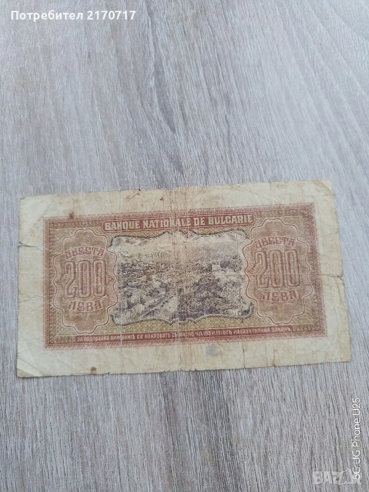 Банкнота 200 лева 1943 година, снимка 1 - Нумизматика и бонистика - 54096968 Банкнота 200 лева 1943 година, снимка 2 - Нумизматика и бонистика - 54096968 1/2
