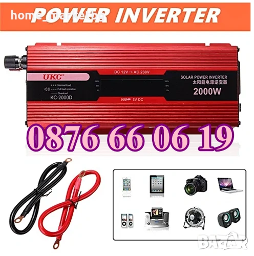 Инвертор 500W, 1000W, 2000W и 4000W 12V/24V 220V, преобразовател на ток