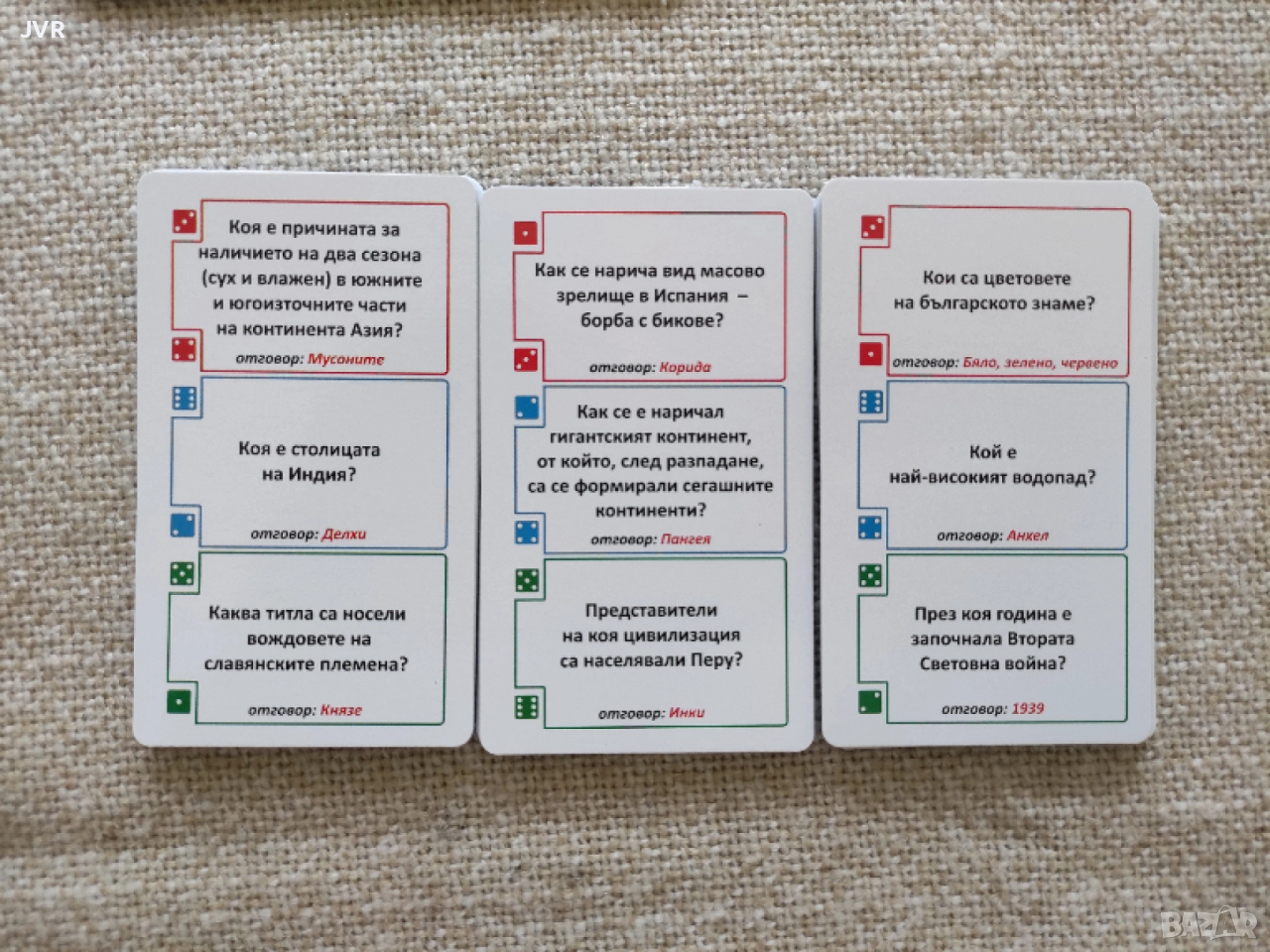 • 56 карти с по три задания на всяка;