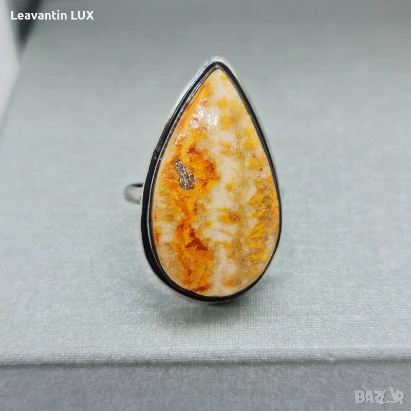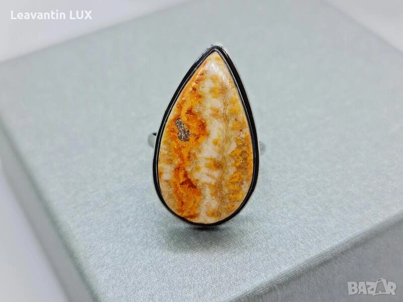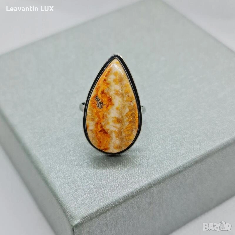 ✨ Характеристики: • Материал: Сребро 925 • Камък: Пчелен яспис (естествен) • Размер: 7 (17 мм вътрешен диаметър) • Размер на предната част: 3 см x 1,6 см