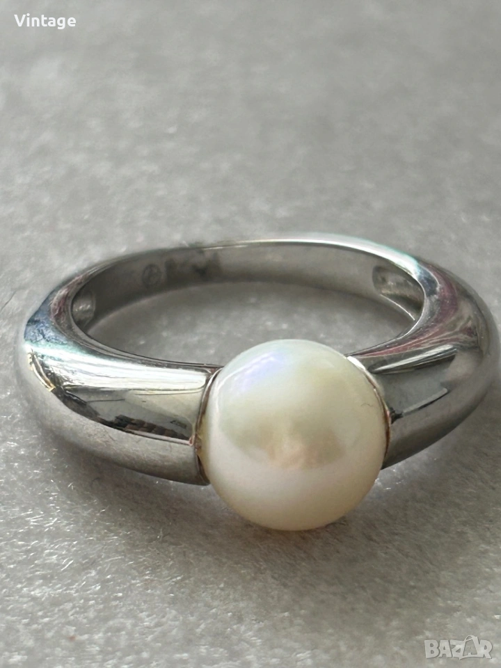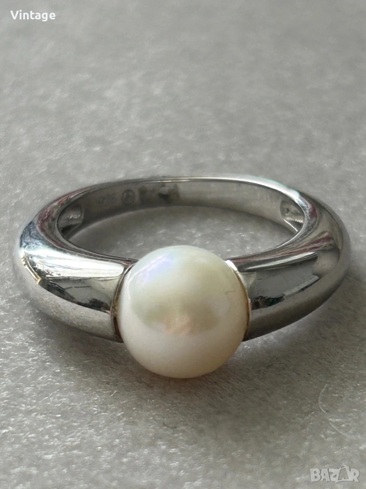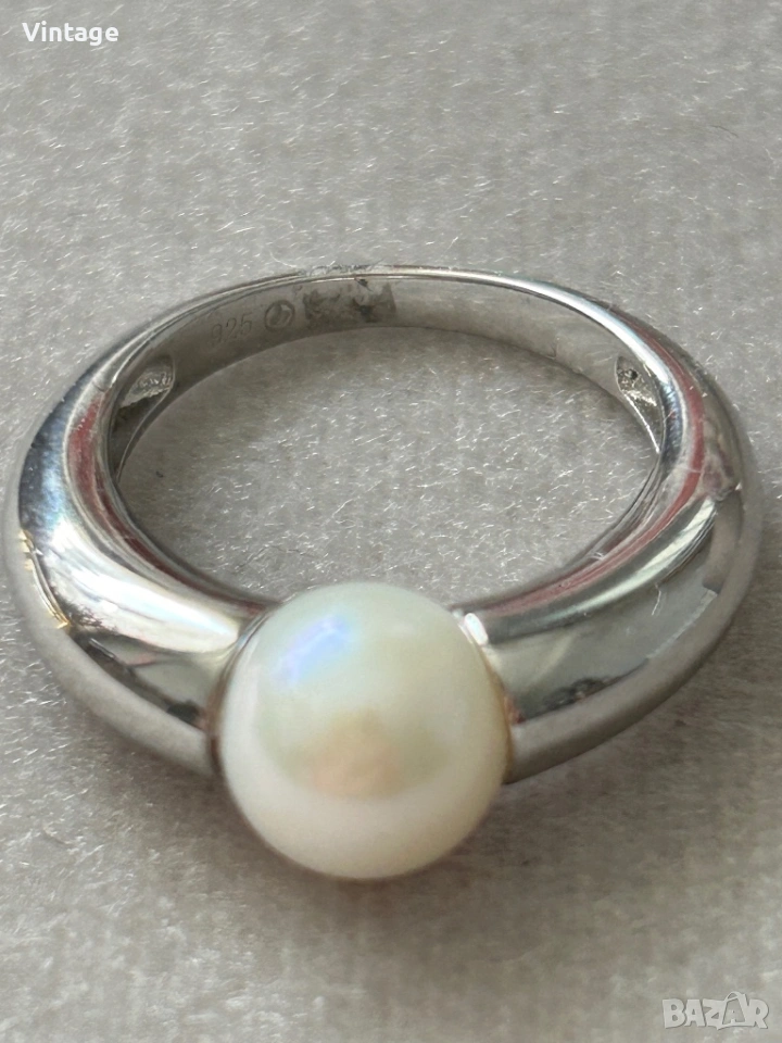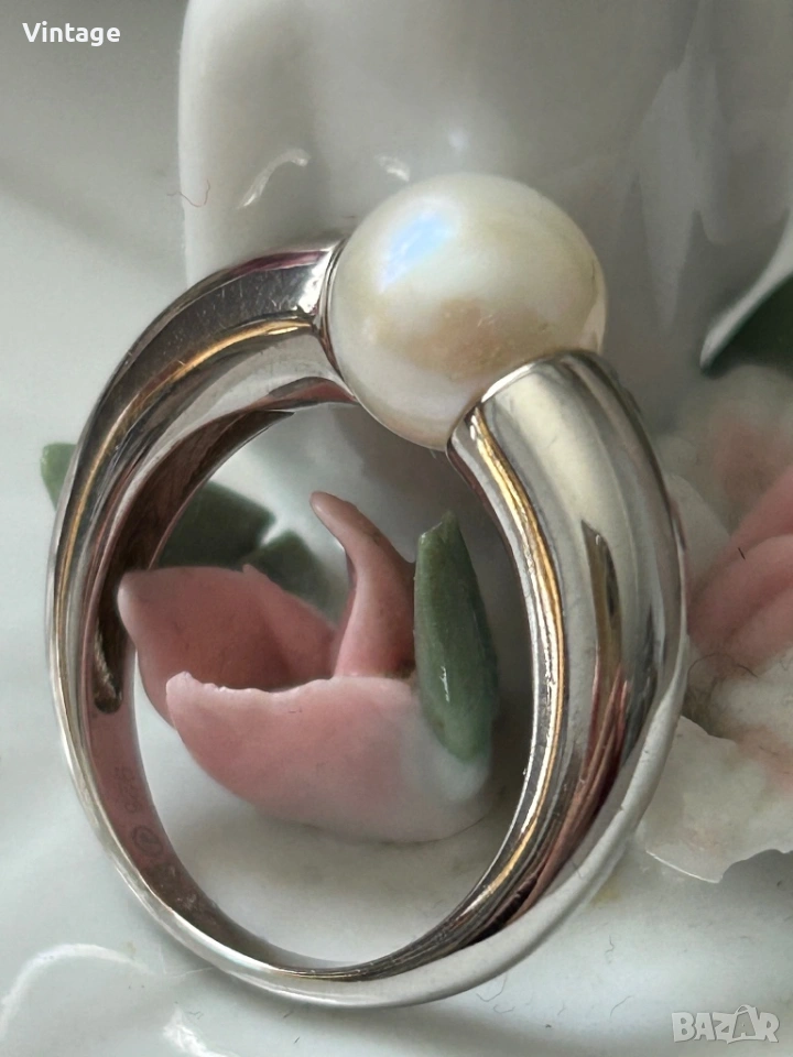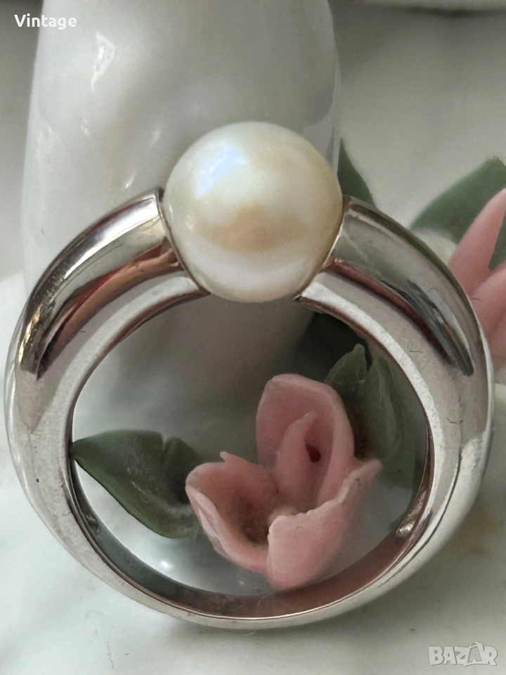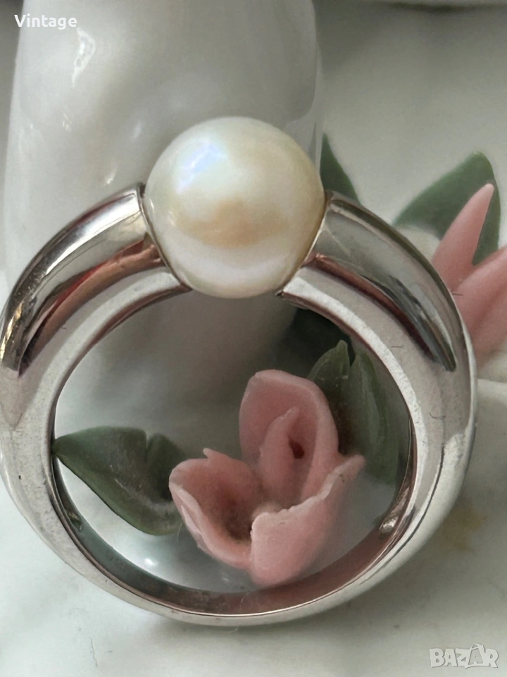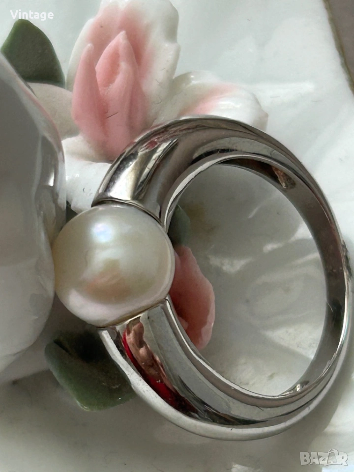 Уникален стилен дизайнерски сребърен пръстен с естествена перла → Обява 54097086