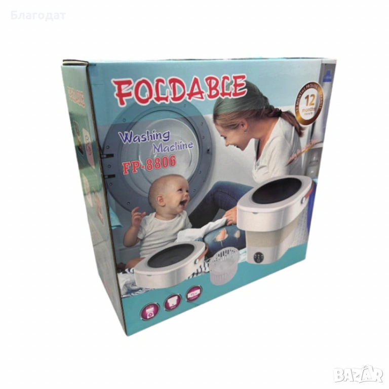 Мини сгъваема пералня с центрофуга – Компактна, мощна и идеална за всеки дом или пътуване - 12 литра → Обява 54097111