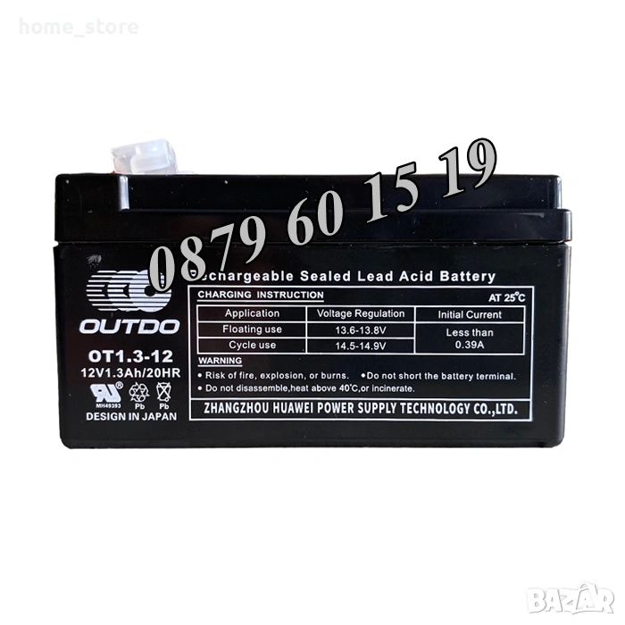 - Номинален капацитет (20 часа): 1.3Ah