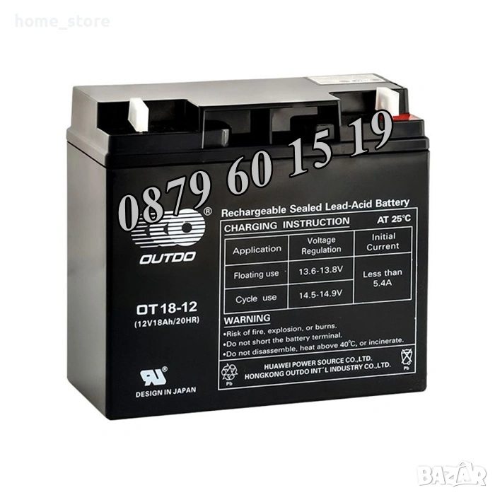 - Номинален капацитет (20 часа): 18Ah