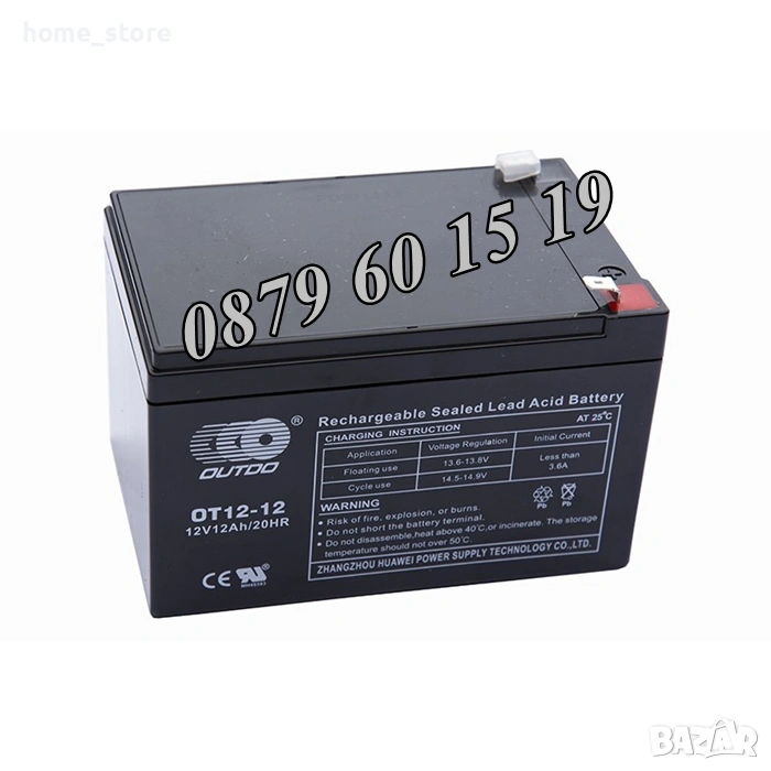 - Номинален капацитет (20 часа): 12Ah