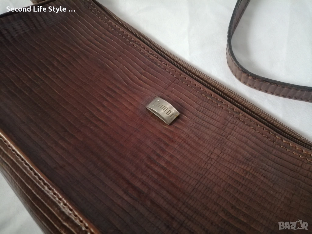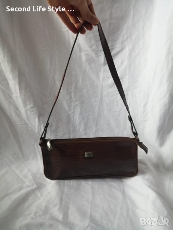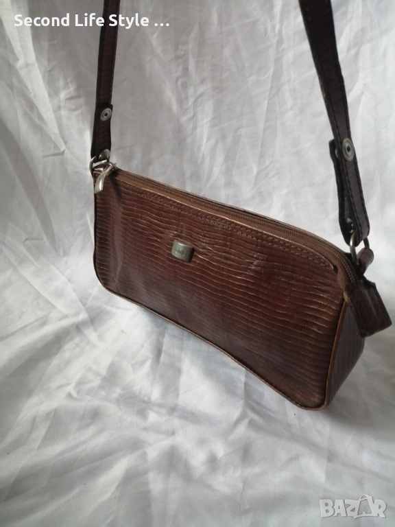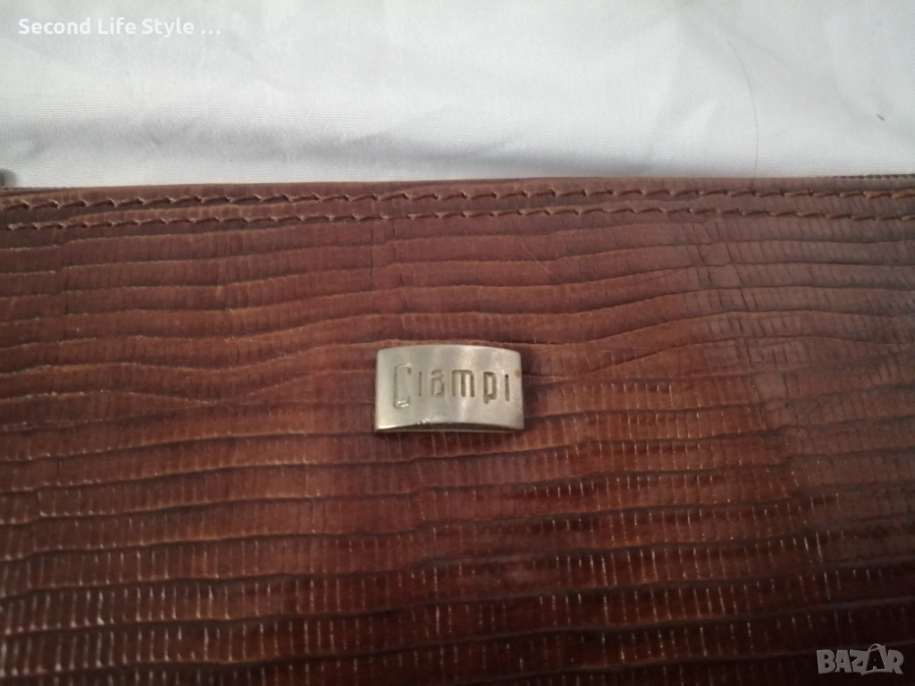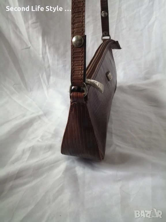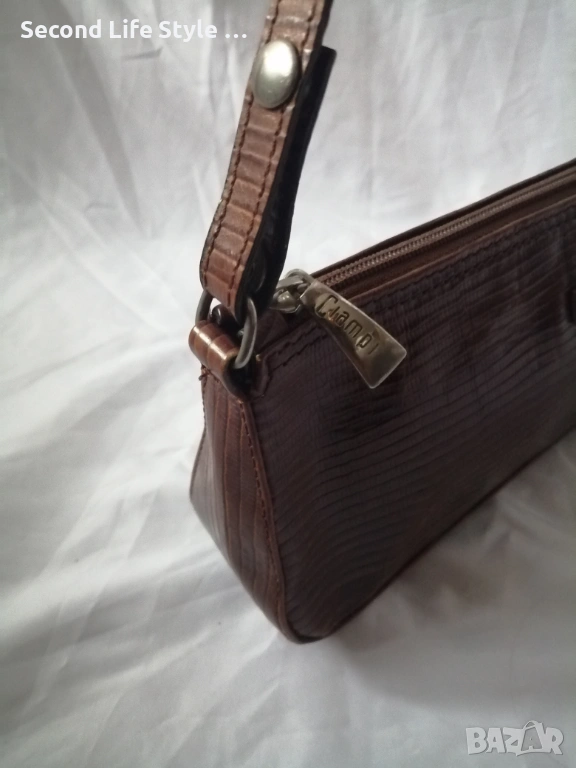 Винтидж италианска чанта за рамо от естествена кожа в кафяв цвят CIAMPI