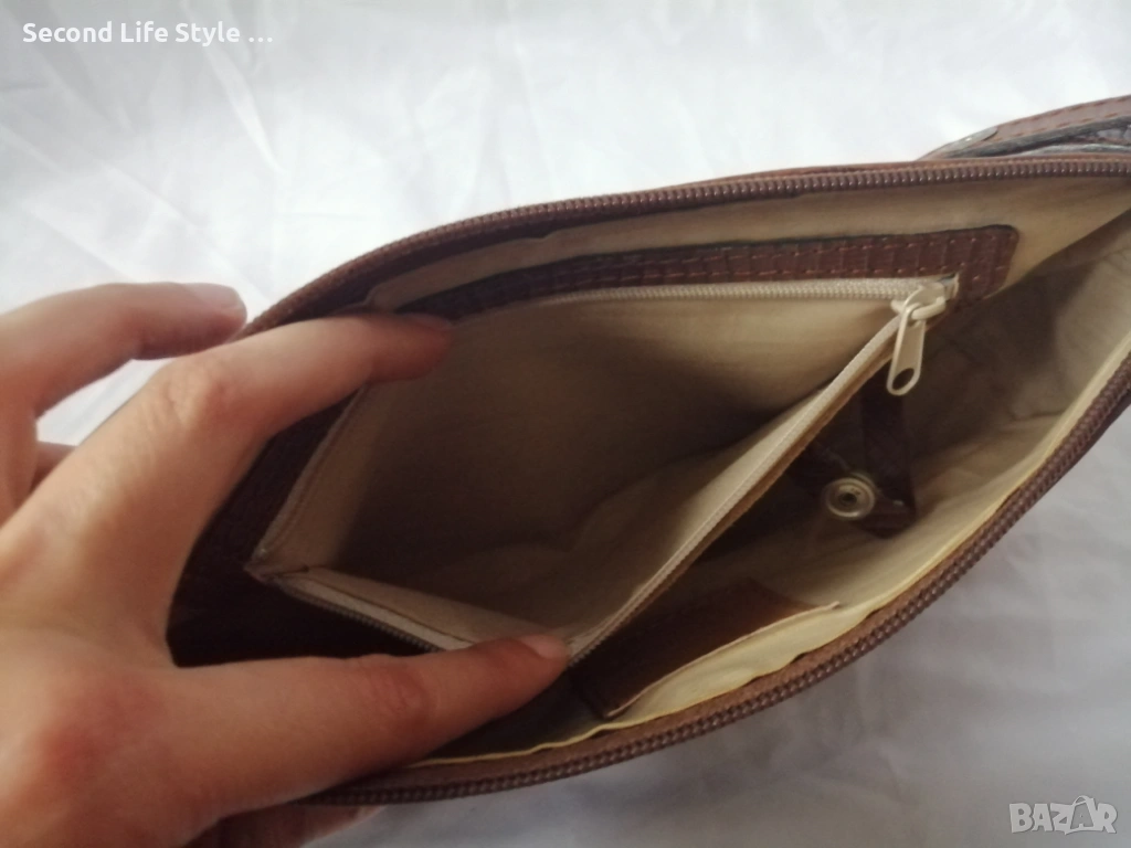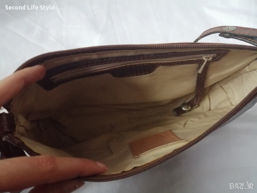 • Чантата е изработена от естествена кожа отвън