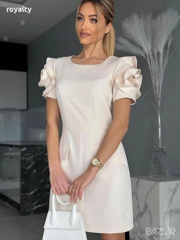 Елегантна Бежова Рокля с Ефектни Ръкави → Обява 54097214