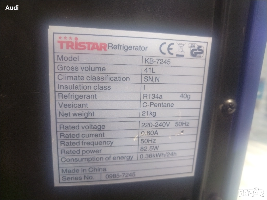 Моделът Tristar KB-7245 (известен още като Icecool 45C) е високоефективна преносима хладилна кутия с компресорна система, предназначена основно за работа на променлив ток (230V).