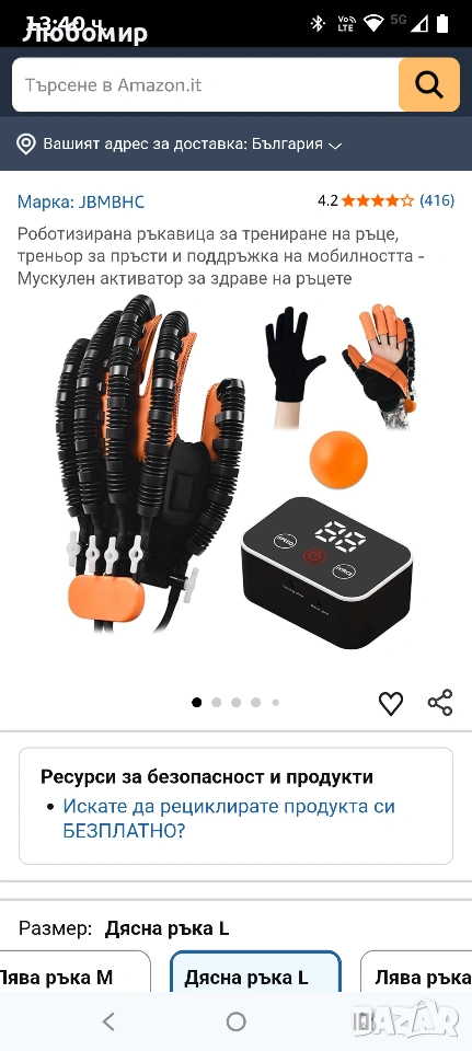 Роботизирана ръкавица дясна L за хемплегия, инсулт, парализа, артрит