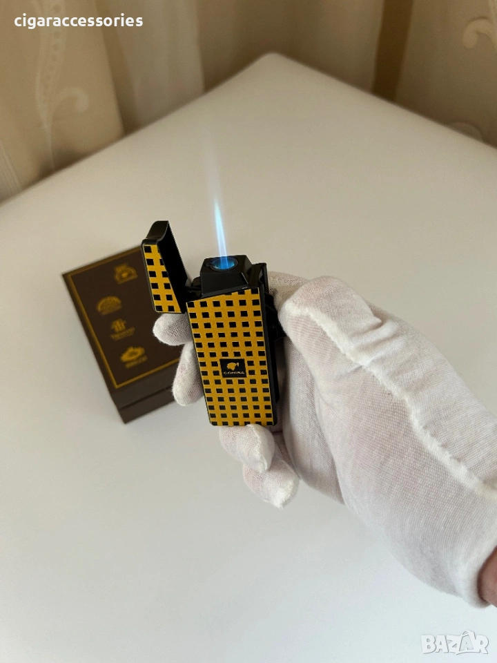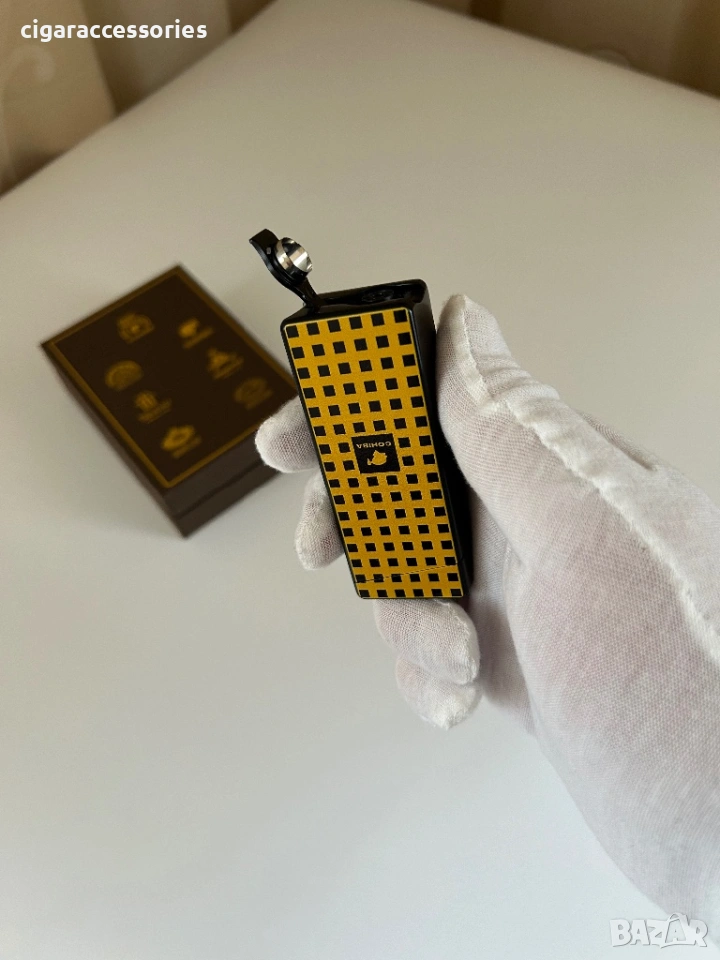Предлагам стилна запалка Cohiba, подходяща за пури и цигари. Мощният турбо пламък (един джет) е устойчив на вятър и осигурява бързо и надеждно запалване.