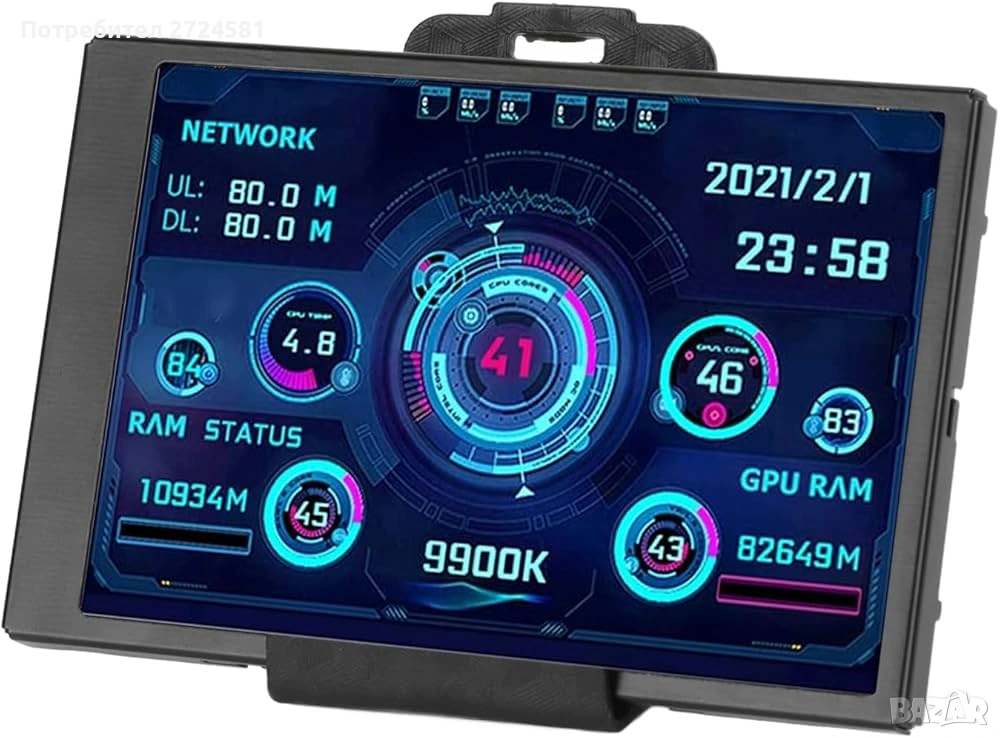 3.5-инчов Вторичен USB Мини Екран с Type-C Док, 3.5" PC CPU RAM Монитор за Данни