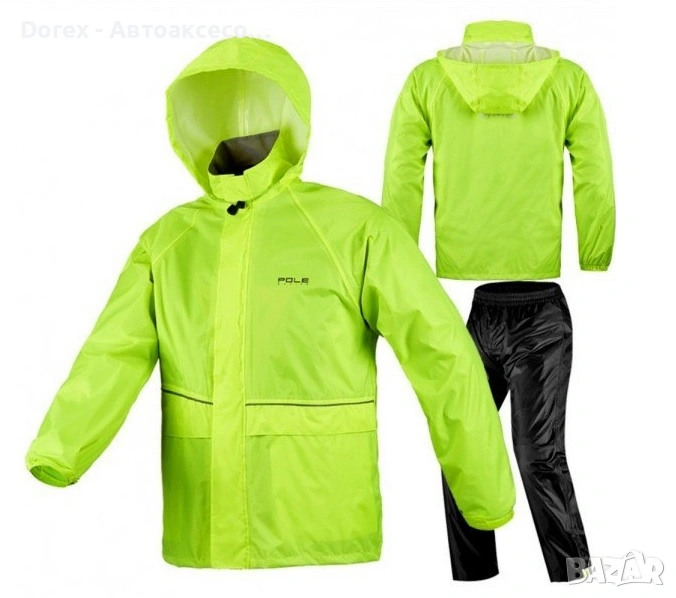 Този дъждобран е от две части - яке и панталон, и предлага пълна защита. Един добър и удобен аксесоар за работа в градината, излет в планината, лов и риболов, спорт на открито,мотоциклетизъм, туризъм,къмпинг,планинско катерене.