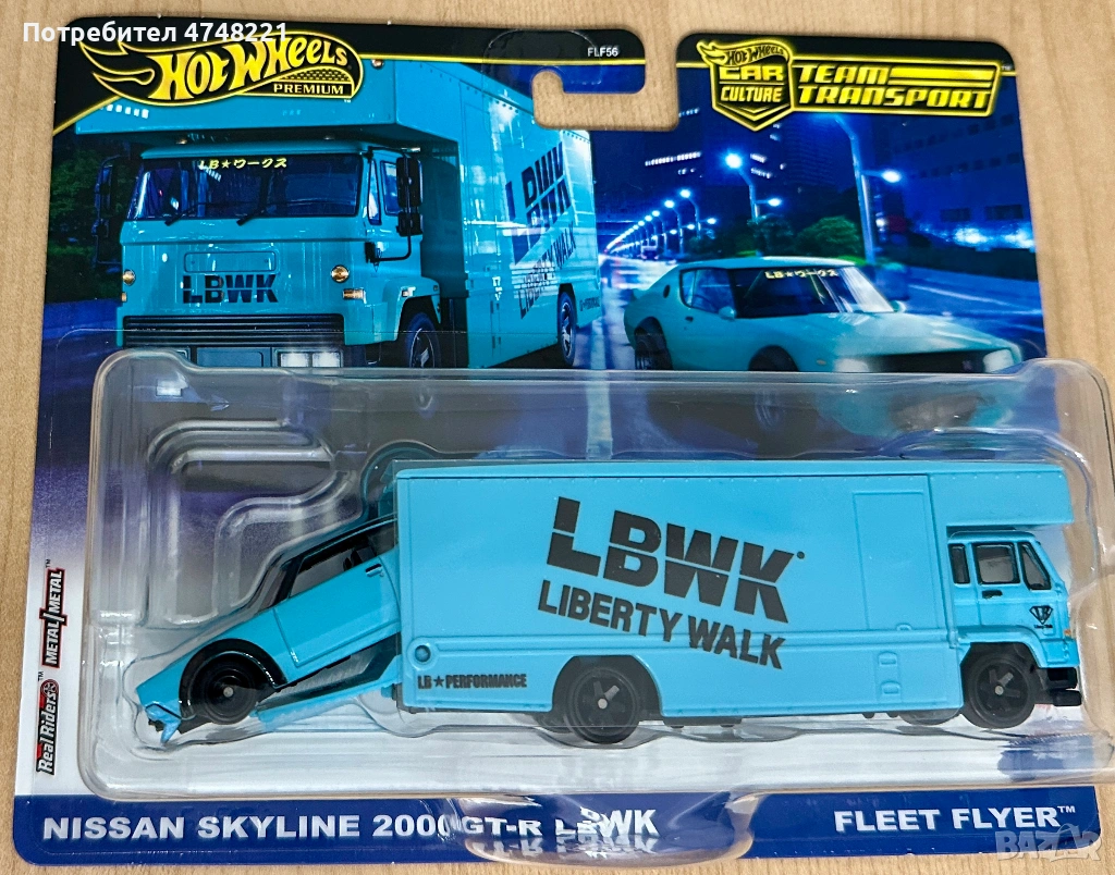 Продавам комплект Hot Wheels Team Transport Nissan Skyline 2000 GT-R LBWK.
