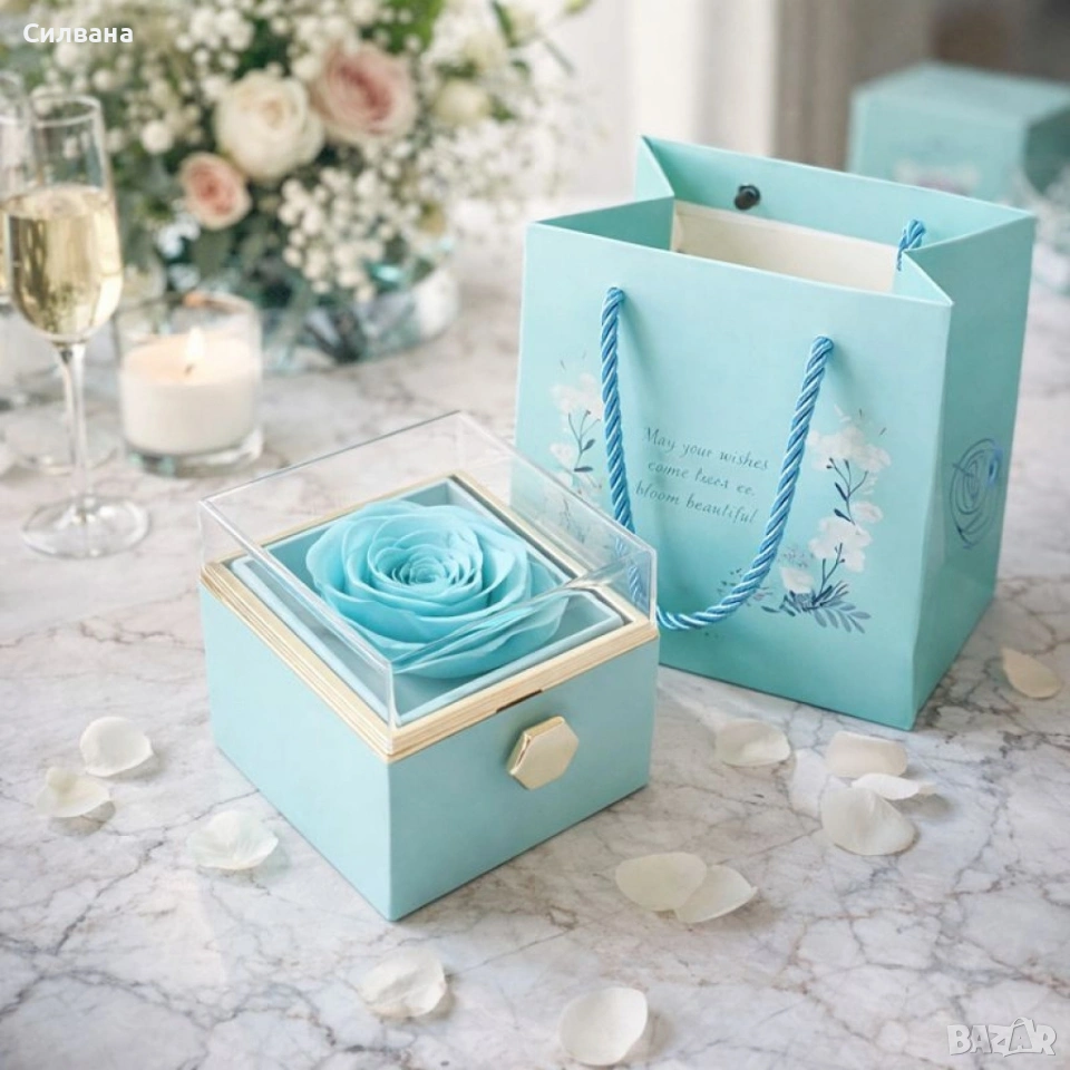 Луксозна подаръчна кутия с консервирана синя роза, снимка 1 - Романтични подаръци - 54097995 Луксозна подаръчна кутия с консервирана синя роза, снимка 2 - Романтични подаръци - 54097995 Луксозна подаръчна кутия с консервирана синя роза, снимка 3 - Романтични подаръци - 54097995 Луксозна подаръчна кутия с консервирана синя роза, снимка 4 - Романтични подаръци - 54097995 1/4
