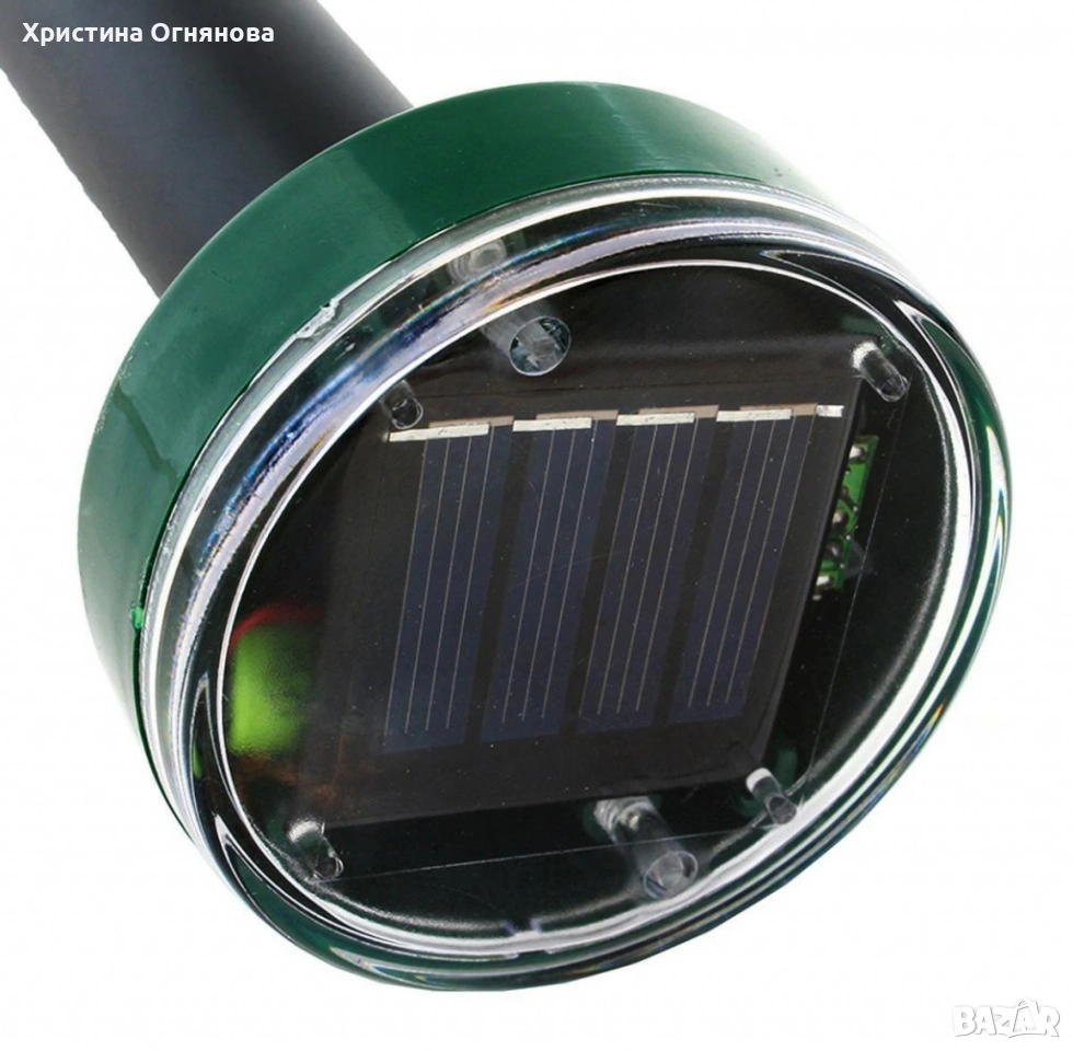 С този соларен уред няма да се притестявате повече за дребните вредители, тъй като уреда на всеки 30 секунди пуска високо честотен звук, който завинаги ще прогони вредителите. Устройството не изисква поддръжка , безжично е, устойчиво е на променящи се метеорологични условия и вода. Соларния уред работи без нужда от допълнителни батерии, слънчевият панел зарежда батериите.