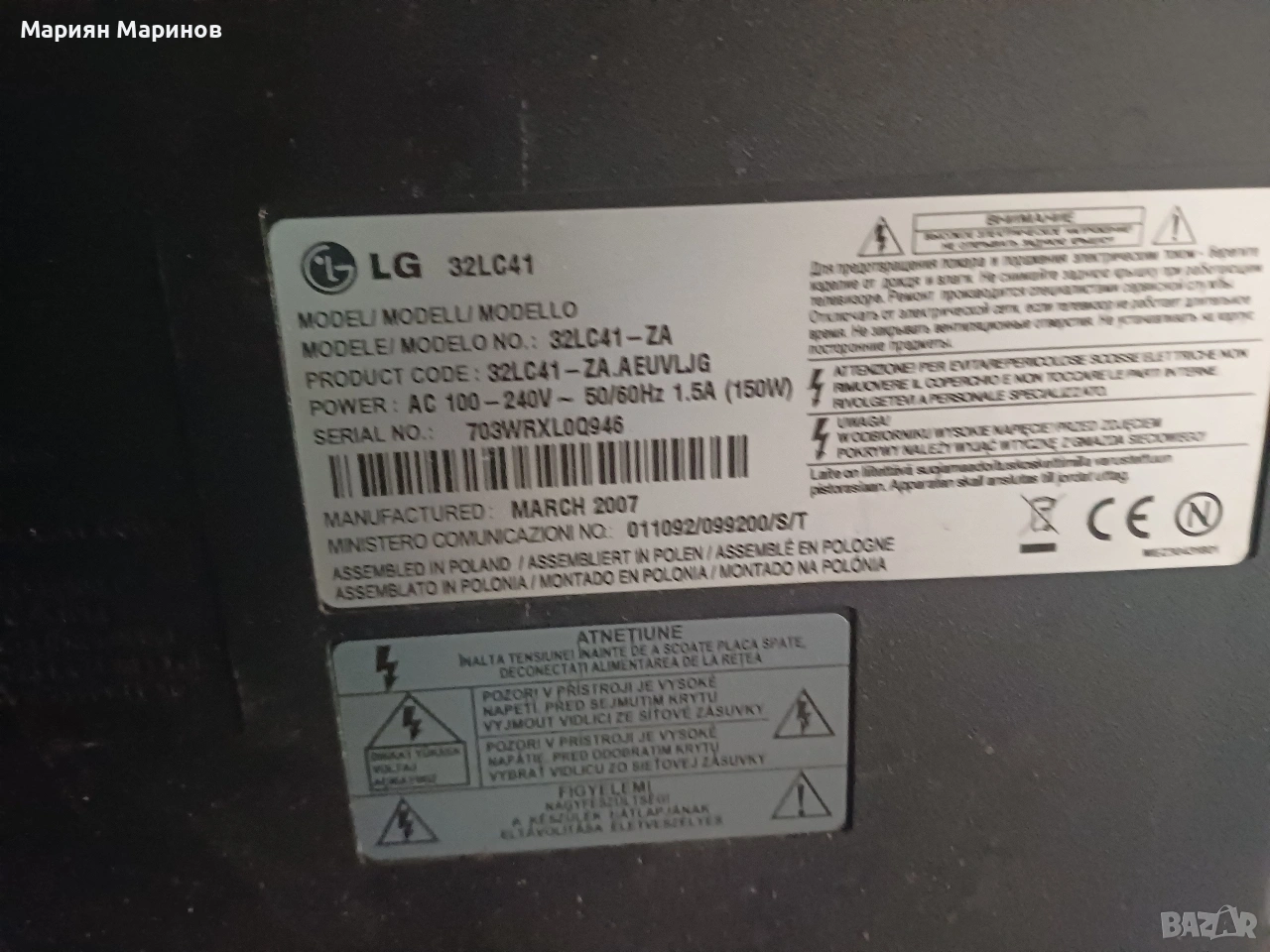 Телевизор LG Модел: 32LC41, снимка 1 - Части и Платки - 54098118 Телевизор LG Модел: 32LC41, снимка 2 - Части и Платки - 54098118 Телевизор LG Модел: 32LC41, снимка 3 - Части и Платки - 54098118 1/3