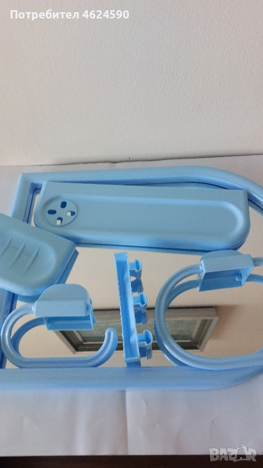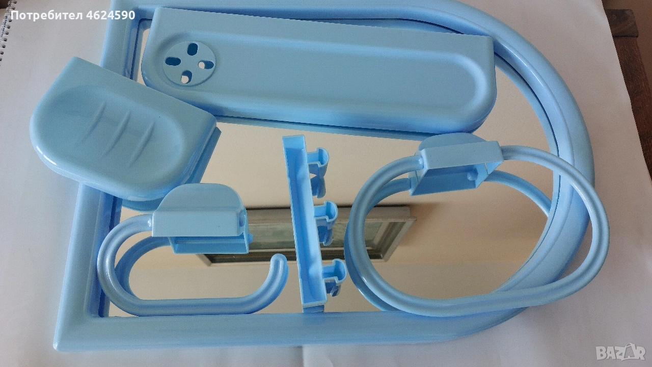Огледало за баня и комплекг с аксесори, ново в кутия. Цвят светло синьо. Размери 49,5 х 37