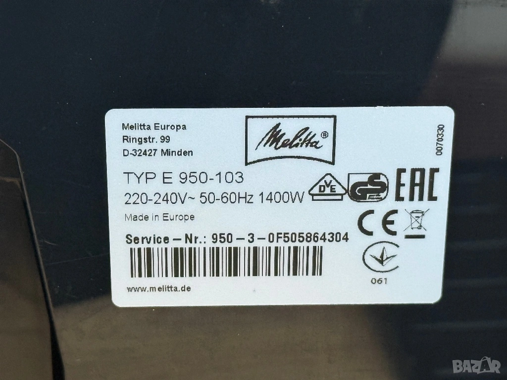 Продавам кафемашина Melitta TYP E 950-103 → Обява 54098157
