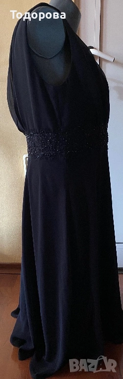 Тъмносиня рокля без ръкав, шифон, с подплата.
