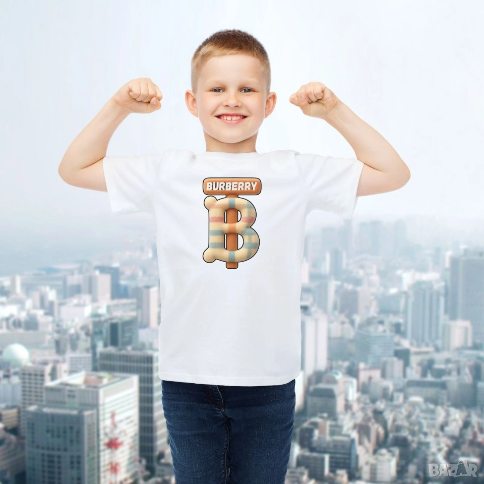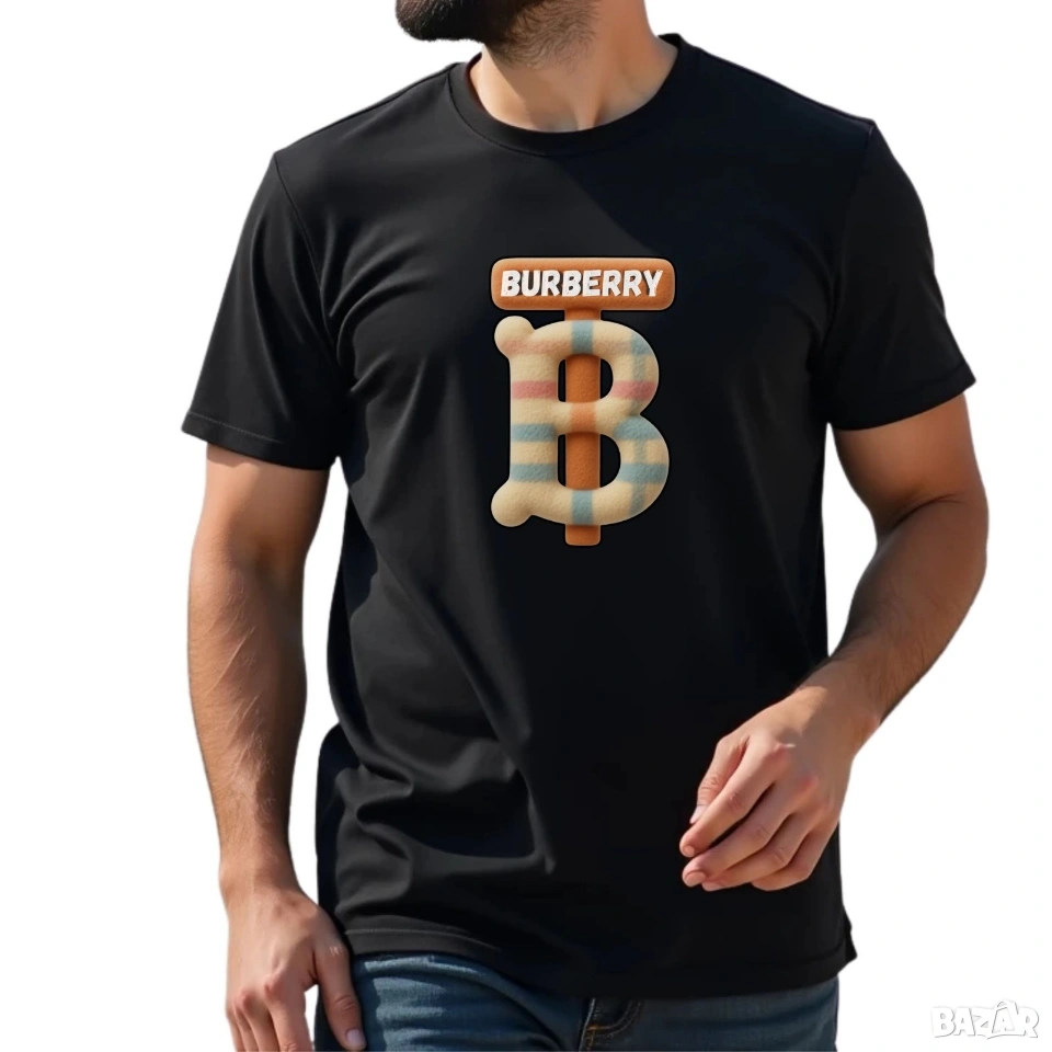 Burberry/Бърбъри мъжка, дамска, детска мода, памучни фланелки, щампа, черна, бяла тениска → Обява 54098274