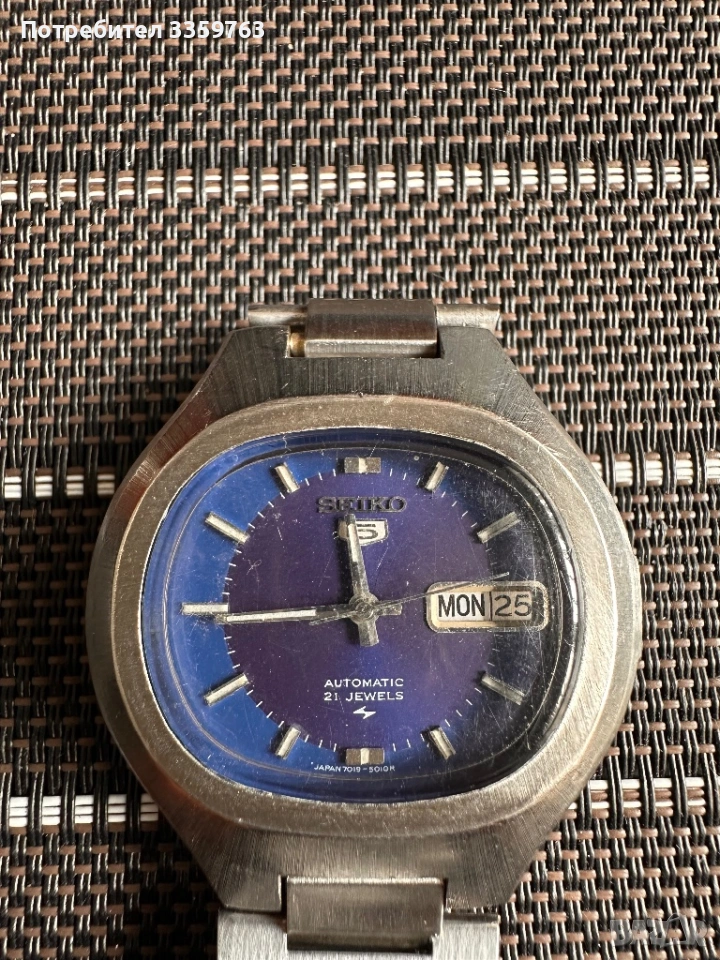 ⌚ VINTAGE SEIKO 5 AUTOMATIC 7019 – СИН/ЛИЛАВ ЦИФЕРБЛАТ – 21 JEWELS – РЯДЪК МОДЕЛ, снимка 1 - Мъжки - 54098346 ⌚ VINTAGE SEIKO 5 AUTOMATIC 7019 – СИН/ЛИЛАВ ЦИФЕРБЛАТ – 21 JEWELS – РЯДЪК МОДЕЛ, снимка 2 - Мъжки - 54098346 ⌚ VINTAGE SEIKO 5 AUTOMATIC 7019 – СИН/ЛИЛАВ ЦИФЕРБЛАТ – 21 JEWELS – РЯДЪК МОДЕЛ, снимка 3 - Мъжки - 54098346 ⌚ VINTAGE SEIKO 5 AUTOMATIC 7019 – СИН/ЛИЛАВ ЦИФЕРБЛАТ – 21 JEWELS – РЯДЪК МОДЕЛ, снимка 4 - Мъжки - 54098346 1/4