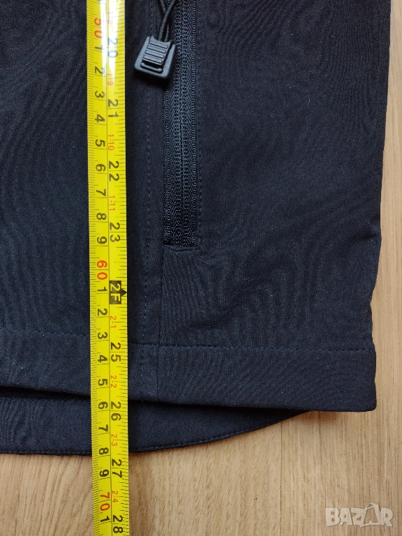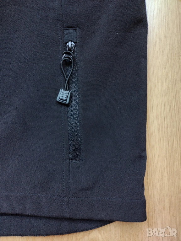 Якето се закопчава с цип, има три джоба, които също се закопчават с цип.