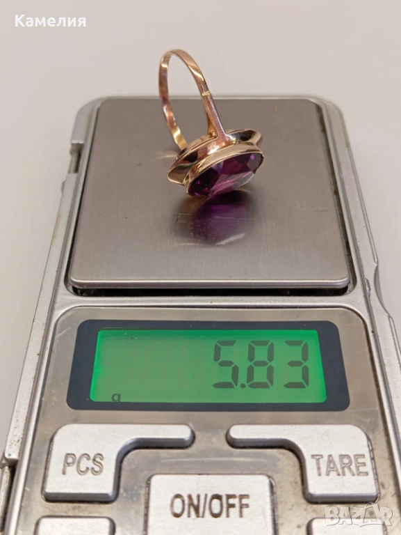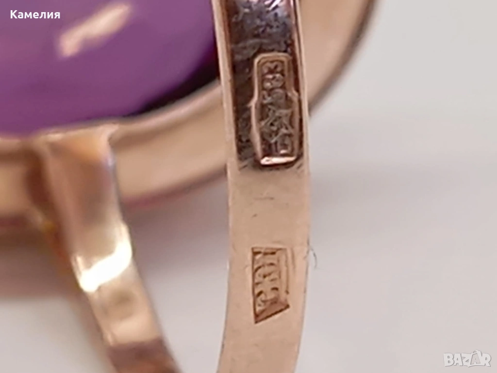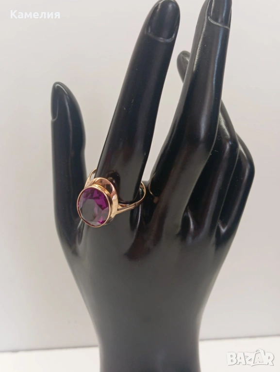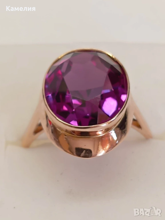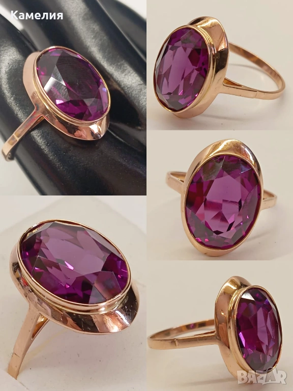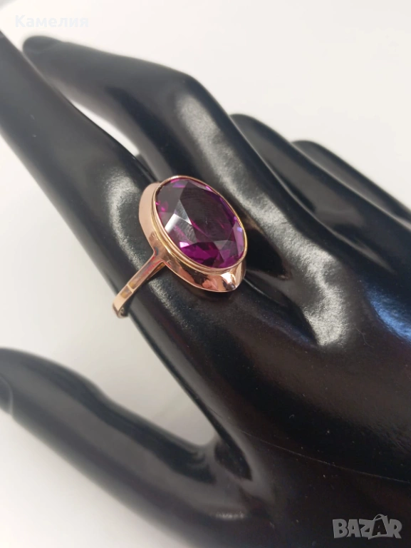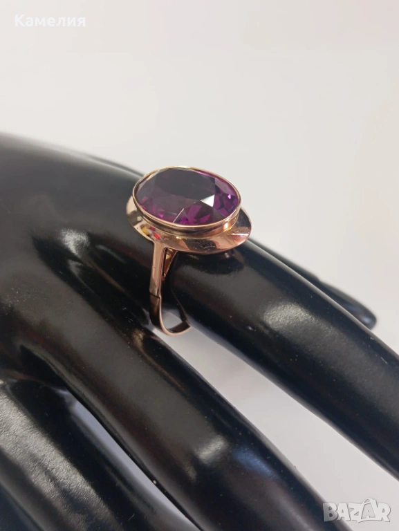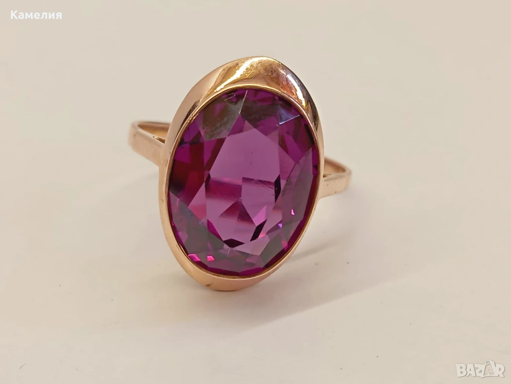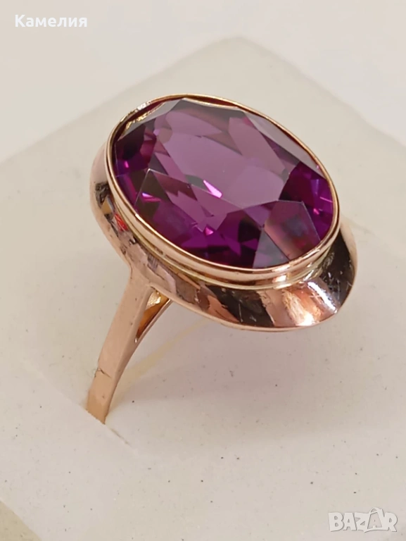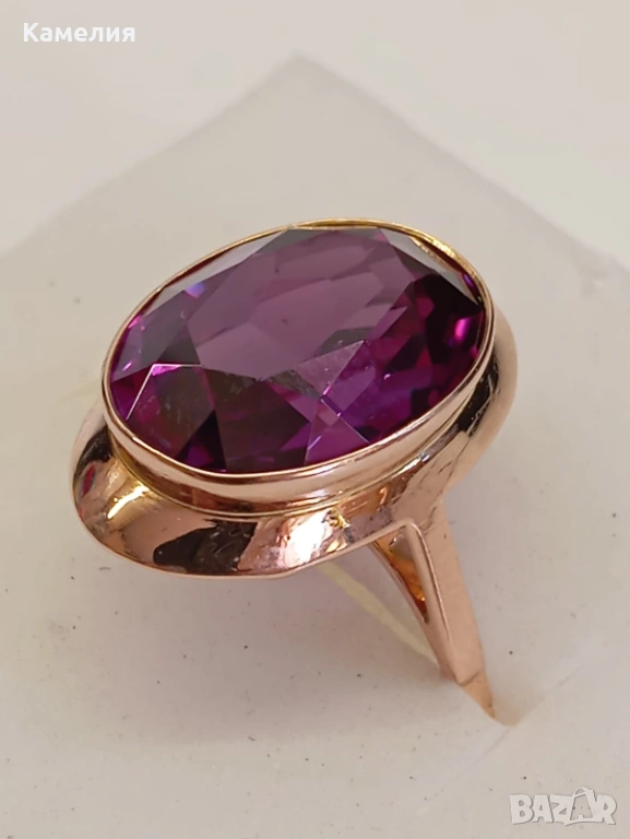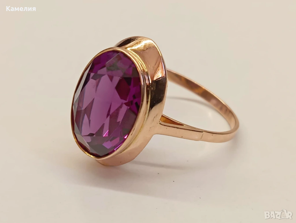 Красив руски (съветски) златен винтидж масивен пръстен. Проба звезда 583. Свердловск. Грамаж 5,83 грам. Рядък голям размер, 21 мм. Лабораторен аметист.