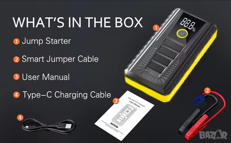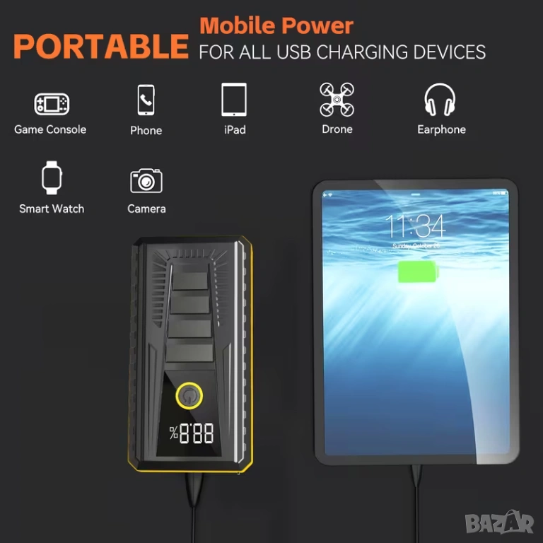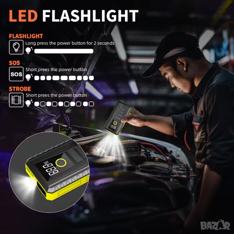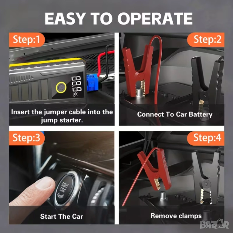 Компактно стартерно устройство за подпомагане акумулатора на автомобила, 1200A