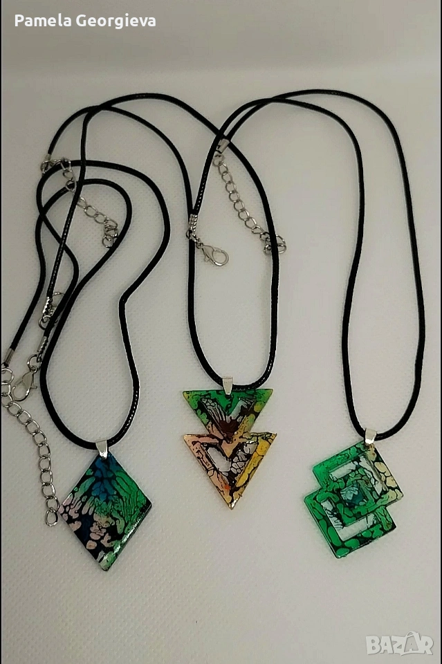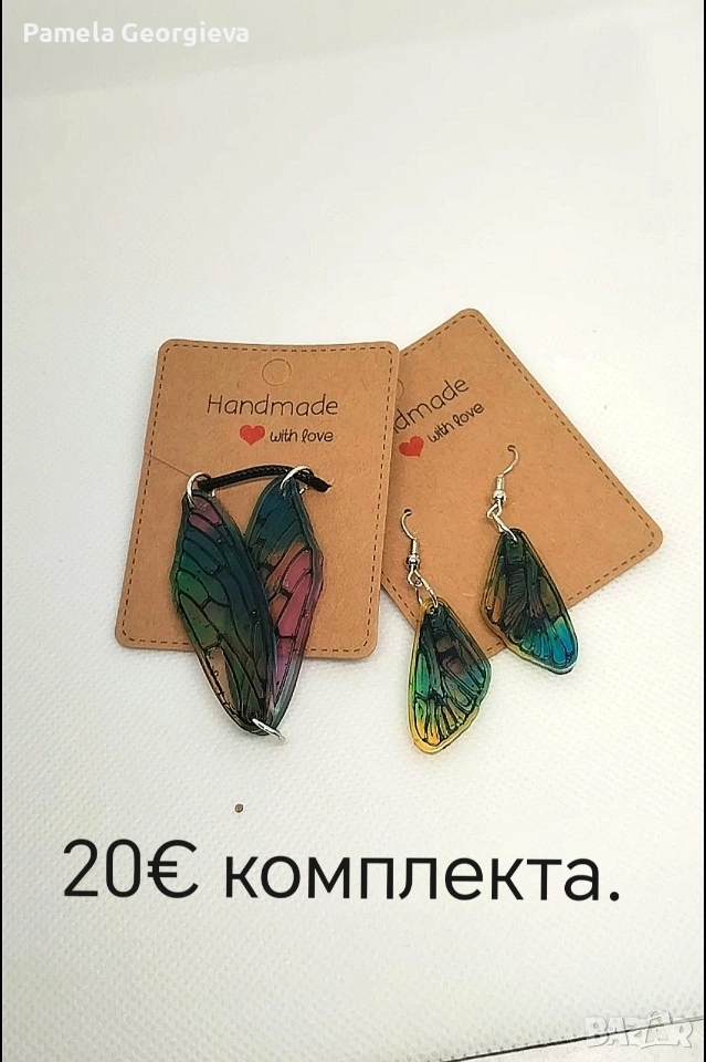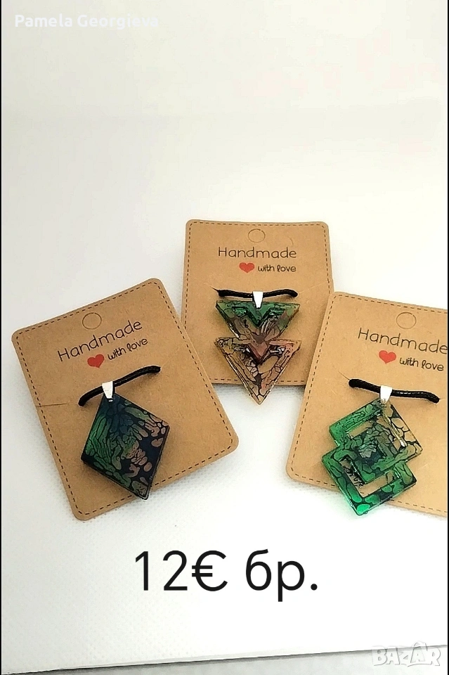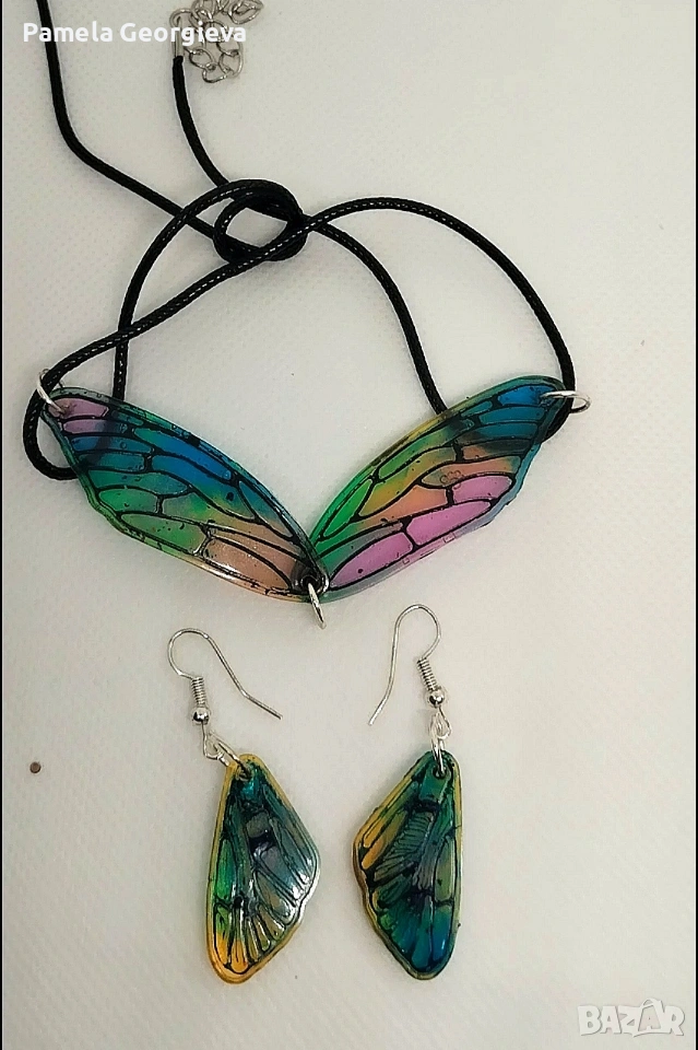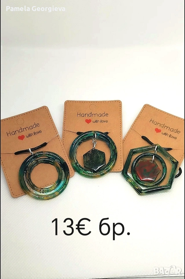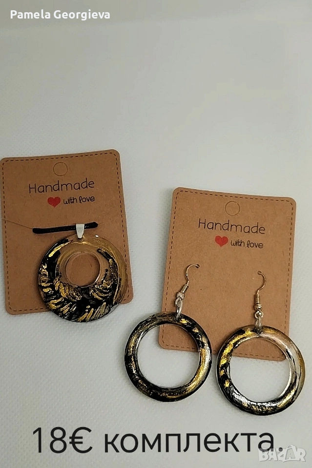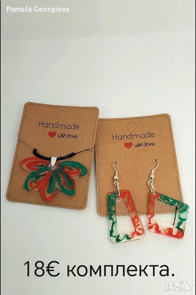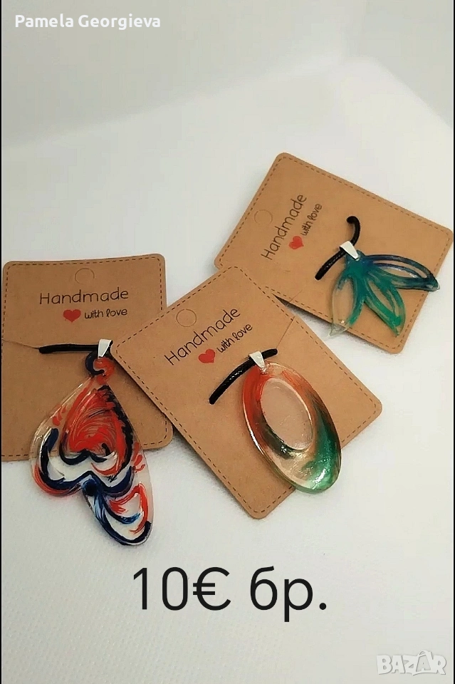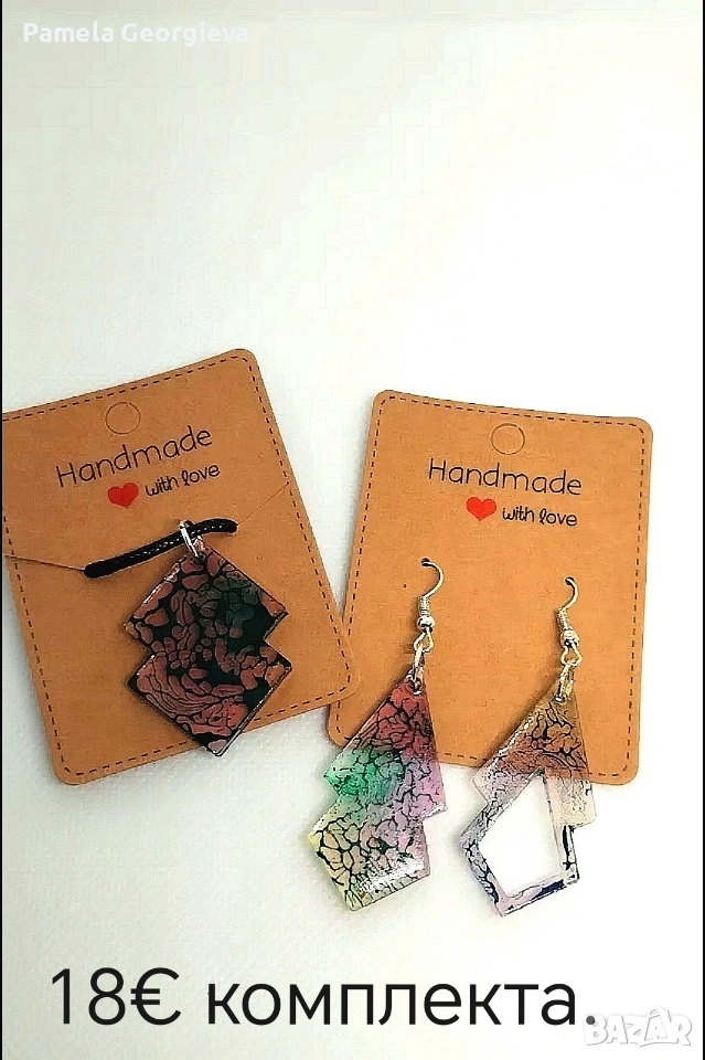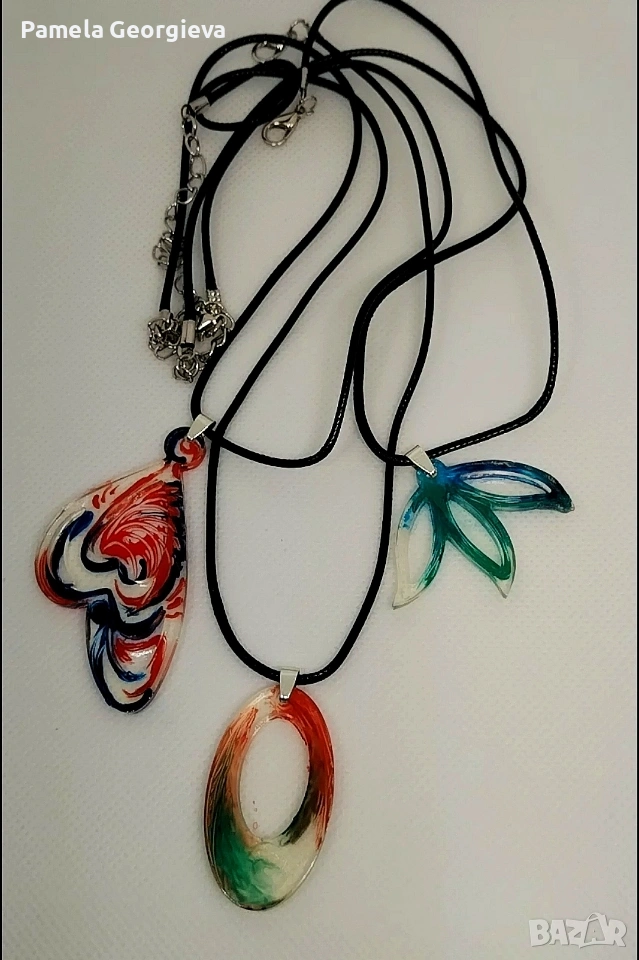 Бижутата са ръчно рисувани и изляти от епоксидна смола. Кукичките за обеците са от сребро, за да максимално се намали риска от алергии и инфекции.