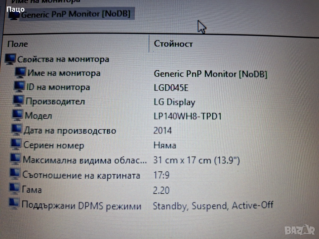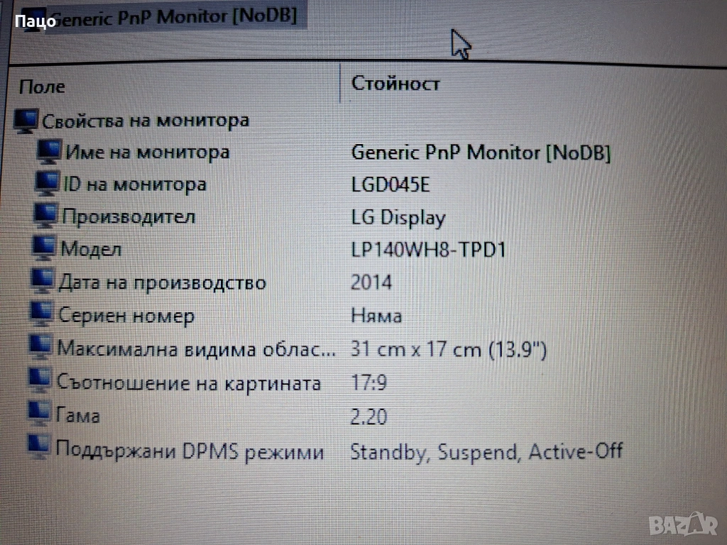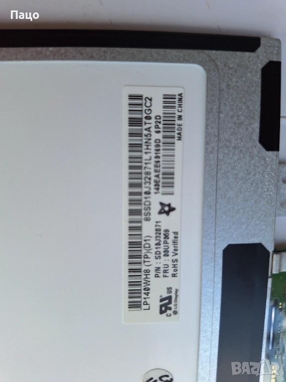 Дисплей лаптоп LP140WH8(TP)(D1) 14.0 инча 1366x768 HD/тестван е ,има снимки//с опция преглед и тест/