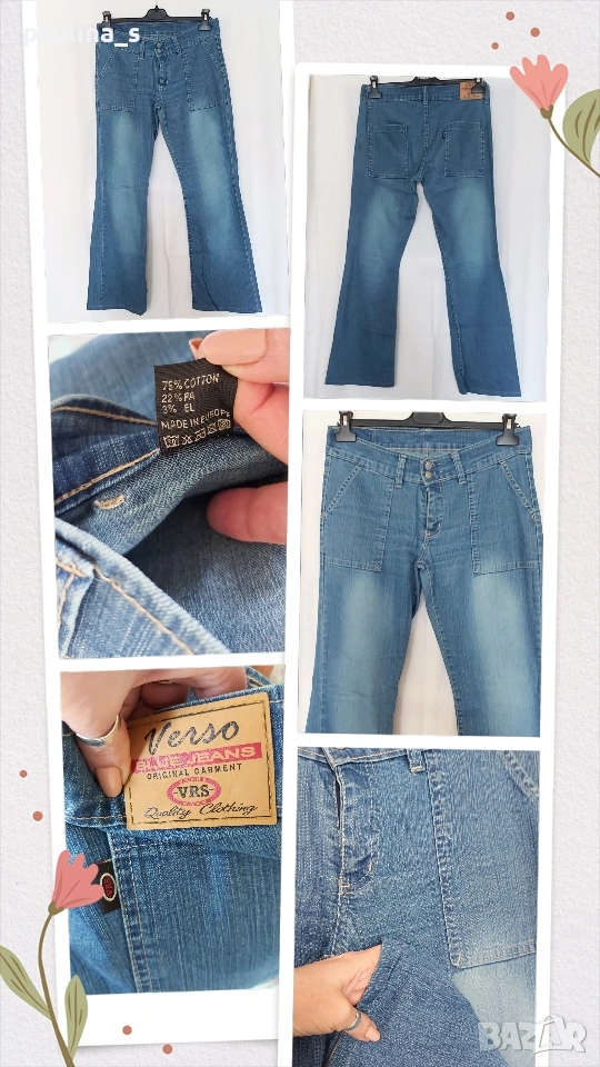 3️⃣ Колаж / Колаж / M / XL - "Verso". Цената е крайна, без пазарлъци 12 евро! Маркови еластични дънки с външни джобове, леко ниска талия и широки крачоли, една бройка, без дефекти, не са чисто нови, но са много тренди, съобразена цена.
