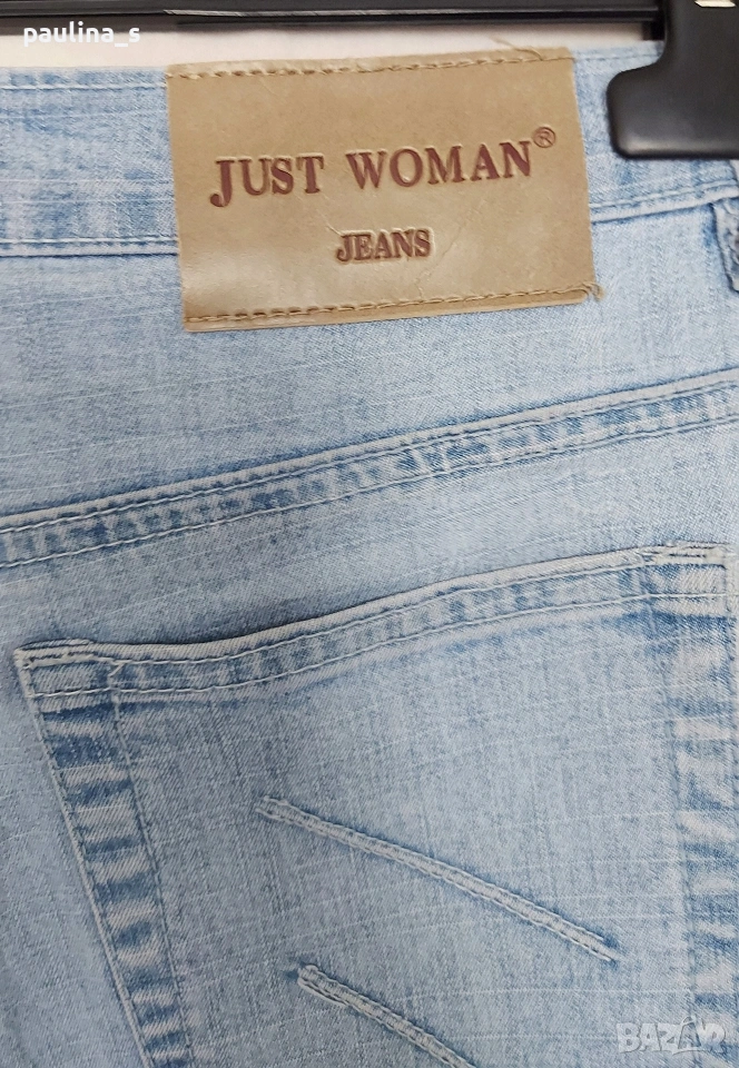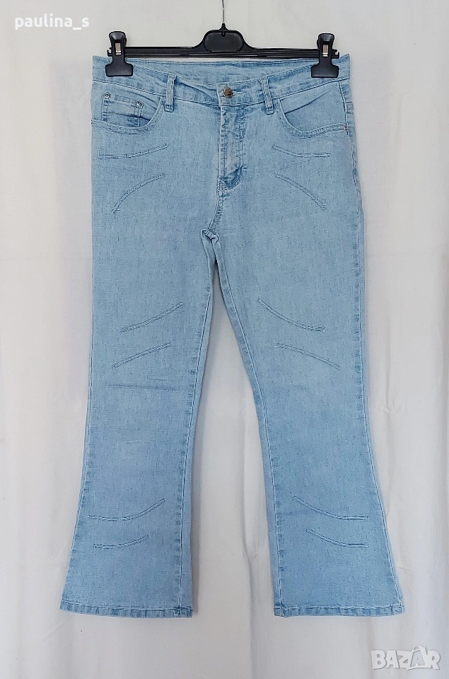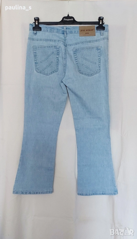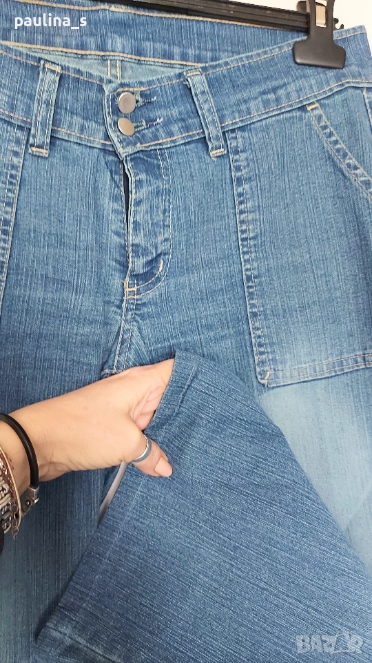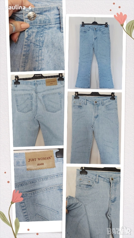 2️⃣ Колаж / Винтидж / M / XL - "Just woman". Цената е крайна, без пазарлъци 15 евро. Еластични дънки с нормална талия и декорирани широки крачоли - bootcut / чарлстон.