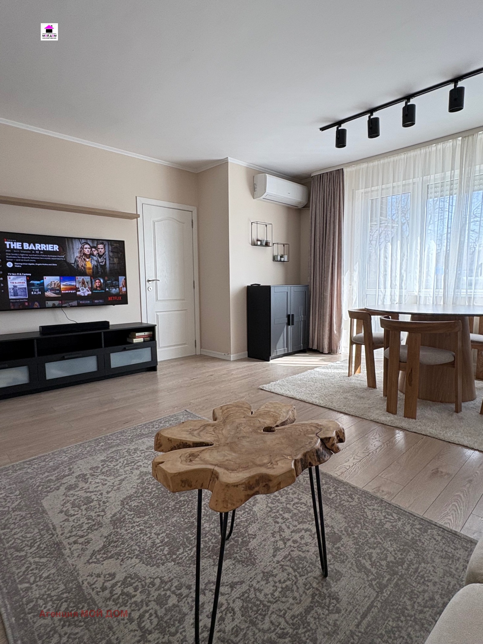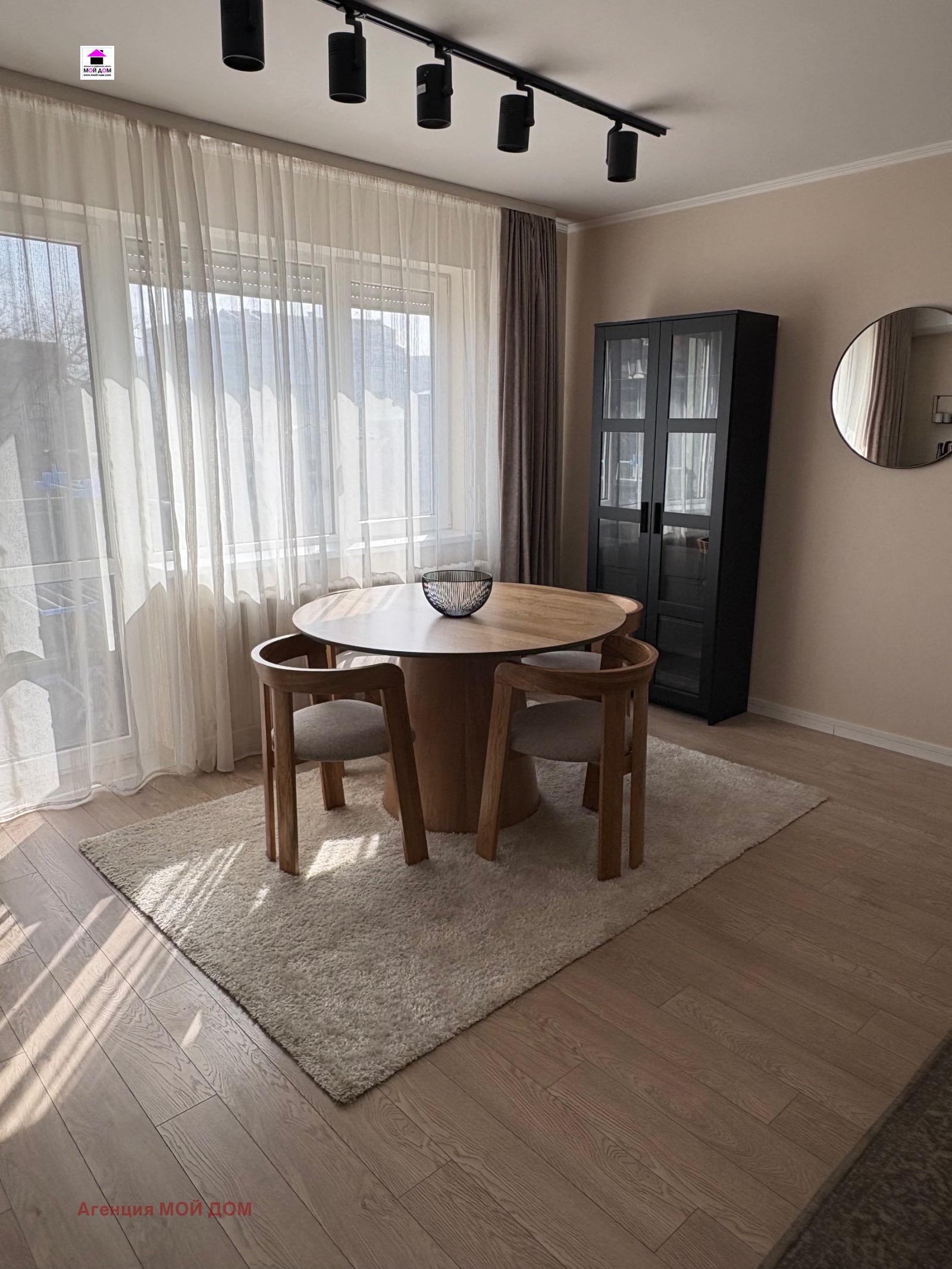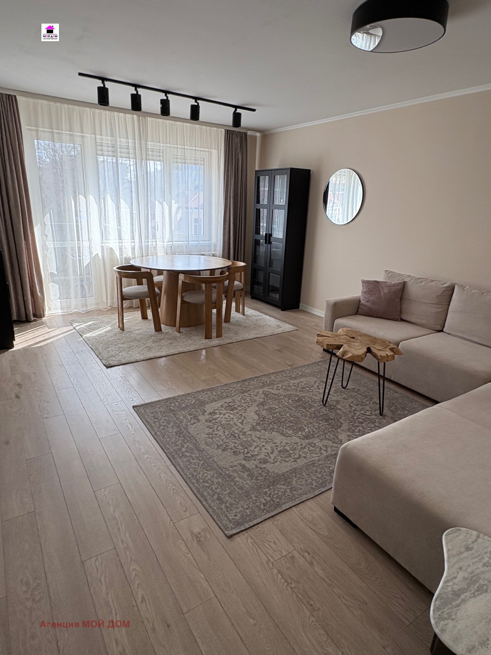Агенция Мой Дом отдава под наем обзаведен тристаен апартамент в нова сграда срещу църквата Света Троица , състоящ се от хол с трапезария, кухня, две спални, баня и тоалетна и една тераса. Отоплението е на ТЕЦ, има асансьор.