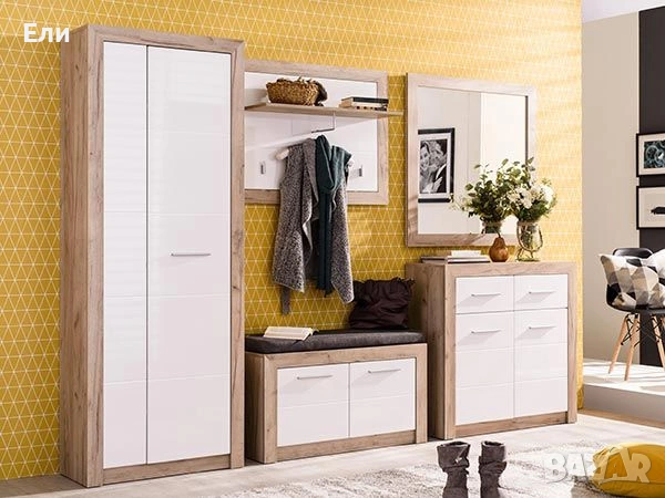 Модулно антре – модерен комплект с гланц бяло и дъб → Обява 54098935