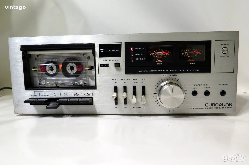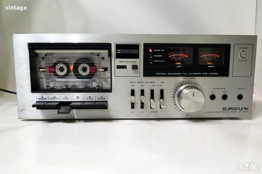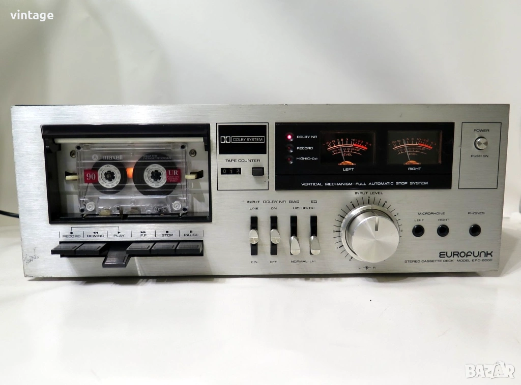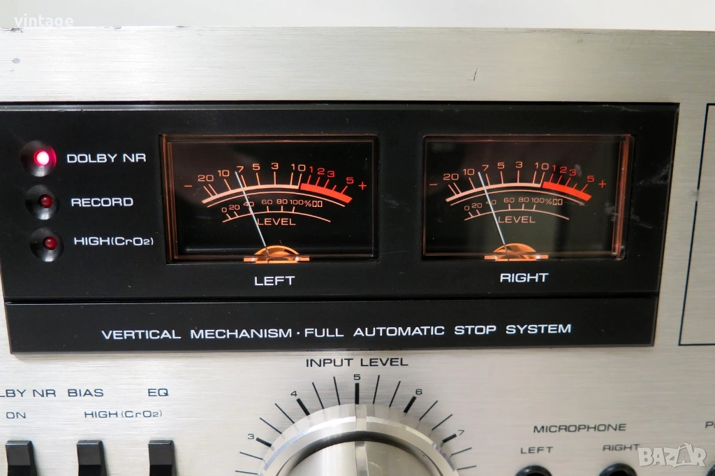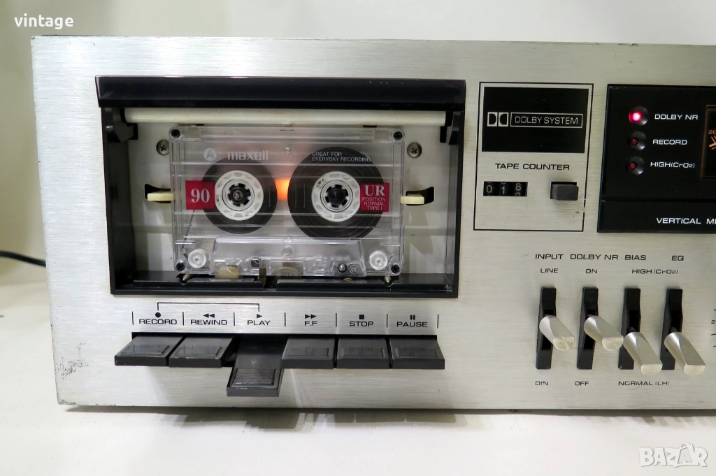 Двуглав стерео касетен дек, технически изправен (плейва/превърта нормално, на запис единия канал е по слаб) Не е обслужван! Ръчен избор на типа лента, Dolby NR, стрелкови индикатори за изходните нива. Добър външен вид. Приложените снимки и видео са реални!