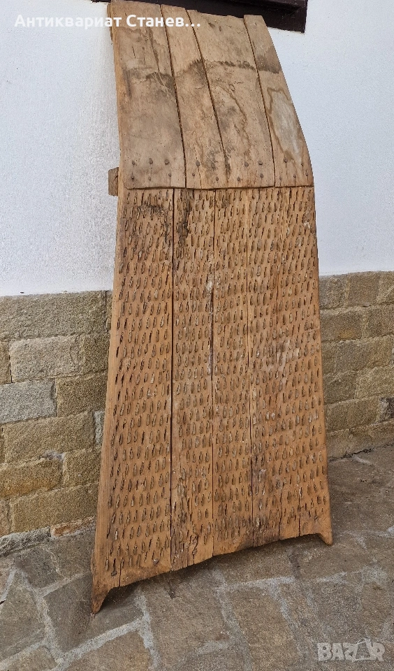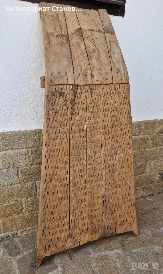 Предлагам стара, оригинална дикaня от Габровско село 🏡 – един от най-емблематичните земеделски уреди от българското минало. Изработена изцяло от масивно дърво, с добре запазени кремъчни остриета, които ясно показват майсторството и практичността на времето.