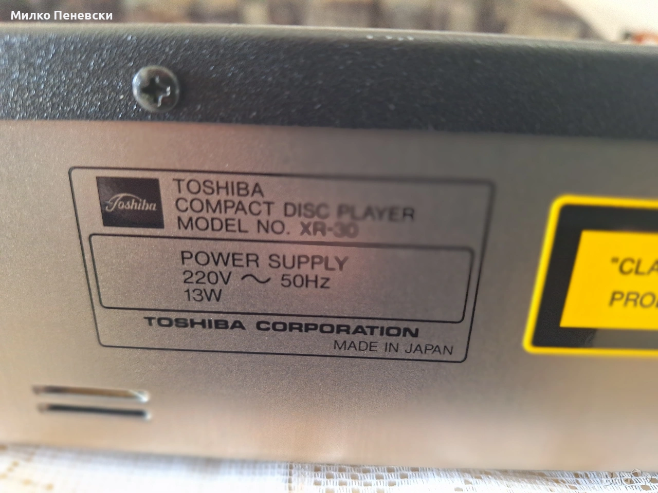 TOSHIBA HI FI STEREO COMPACT DISC PLAIER XR-30.MADE IN JAPAN. → Обява 54099055