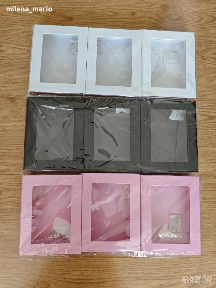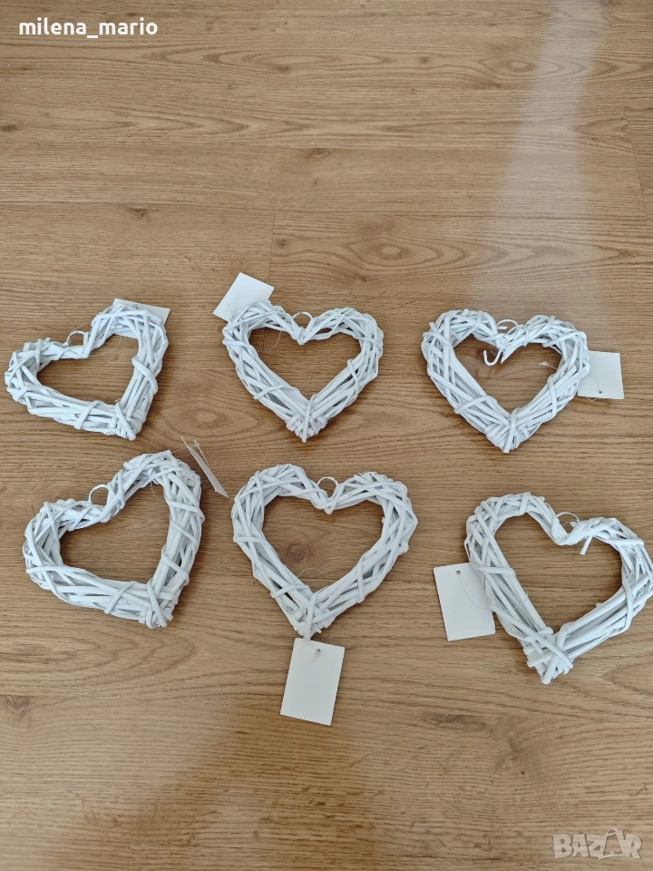 Кошница бяла овална 30*25*11 -8€ Кошнички малки 0.70€/бр. Кутия тип книга 17*14*5.5-розов/бял/черен -5€/бр. Ратанови сърце 16см-3€/бр.