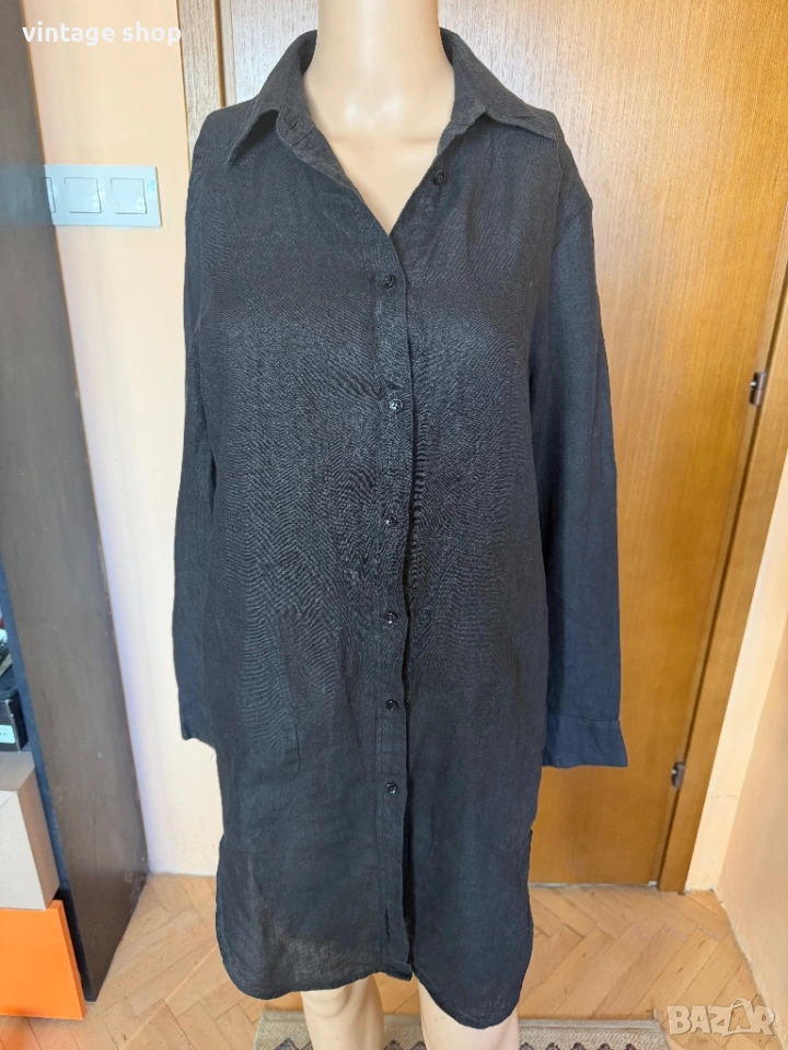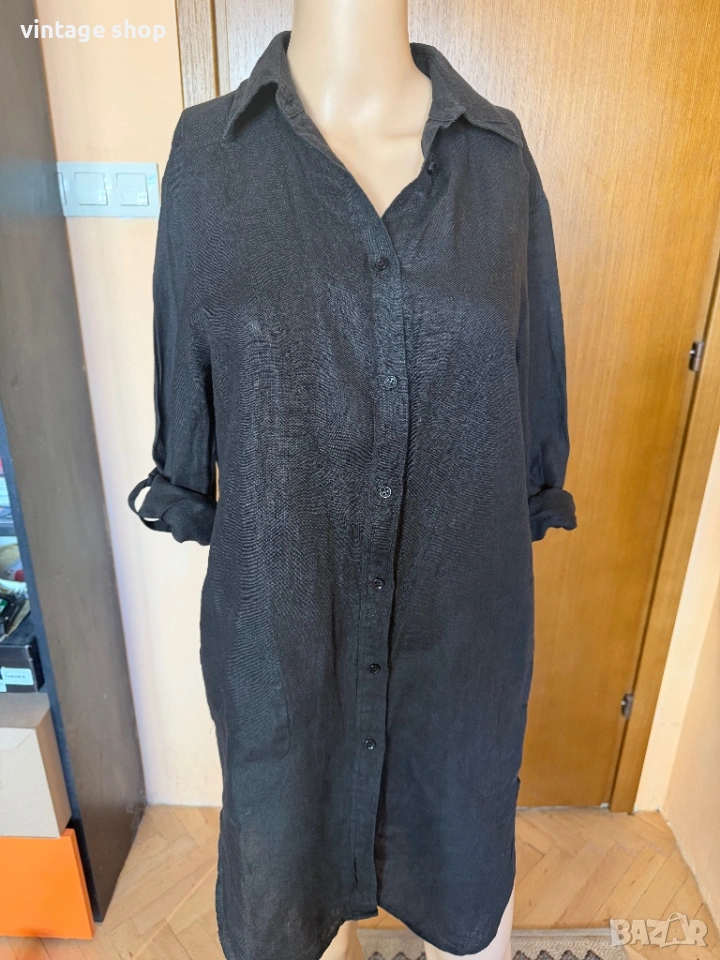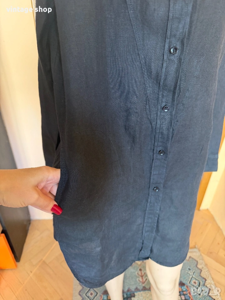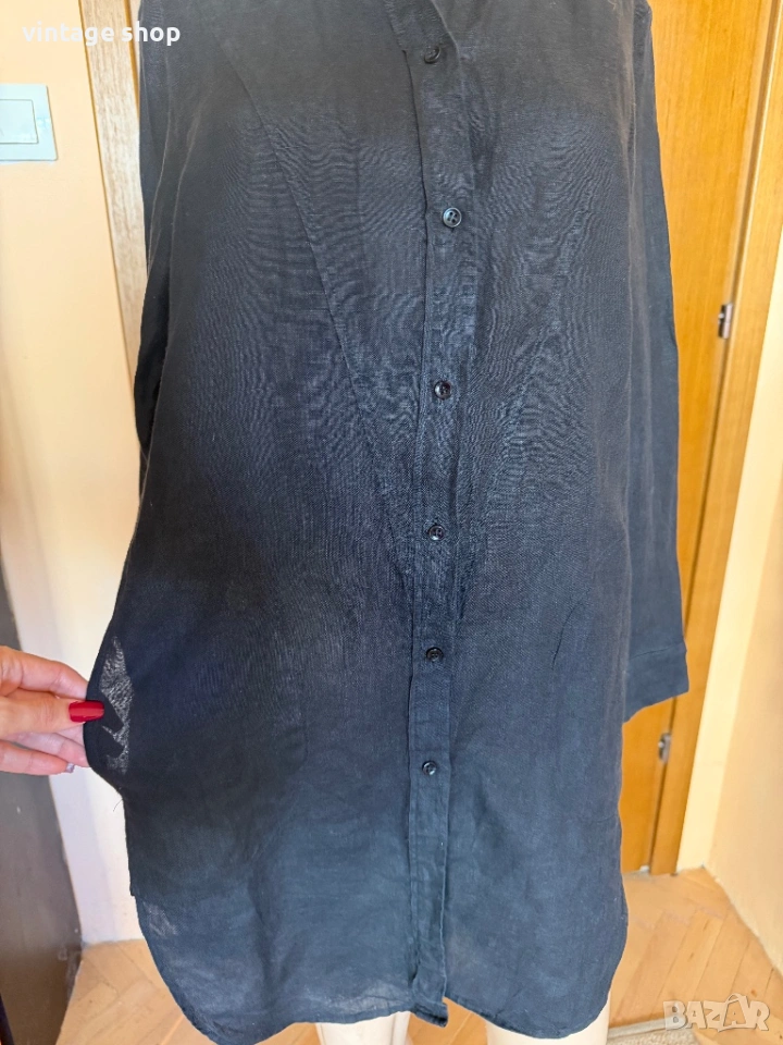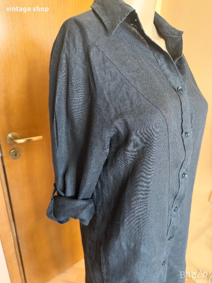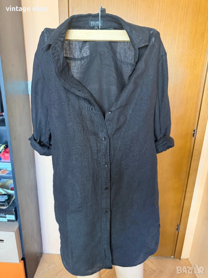 Туника, тип риза на скъпия бранд Escada sport. Перфектна дреха за лежерното, свободно време, ваканциите край морето. Изработена от 100% лен- естествена, дишаща материя, най- добрият избор за топлите месеци.