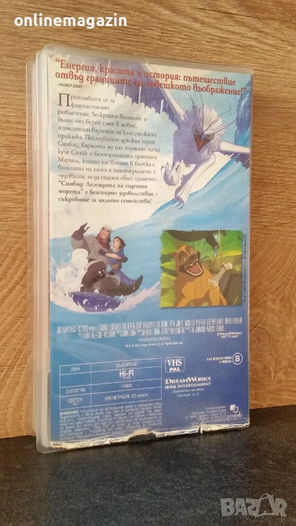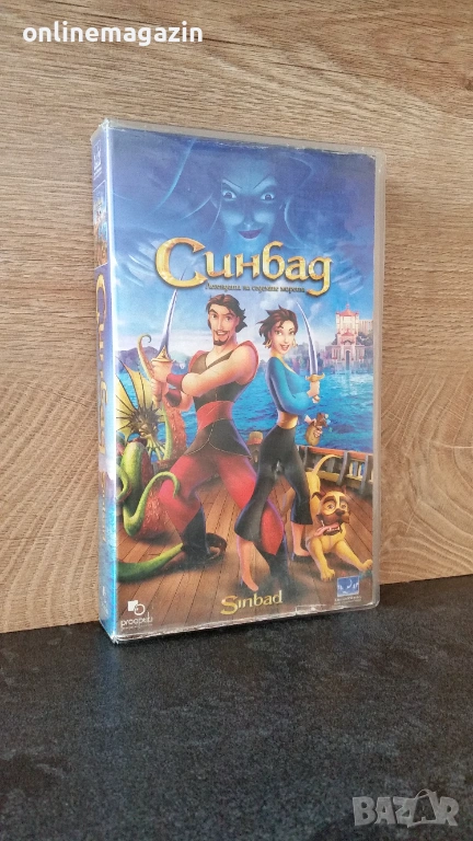 Продавам оригинална видеокасета "Синбад - Легенда на седемте морета" Много интересна и забавна анимация от 2003 година. Времетраене 82 минути. Касетата е озвучена на български език и работи отлично. Изпращам с Еконт, Спиди или лично предаване за град Бургас.
