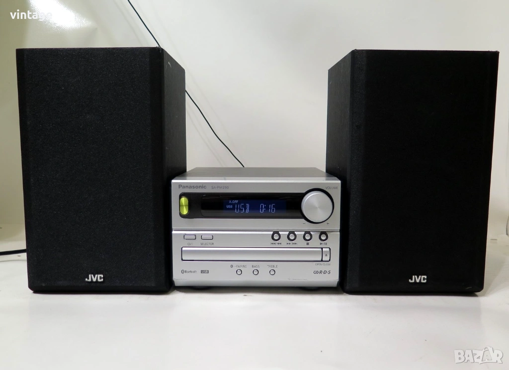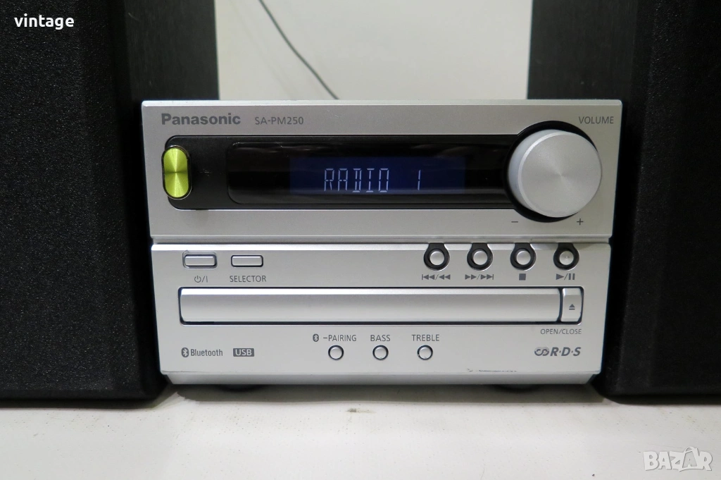Аудио система с добър външен вид, блутута не работи, всичко друго работи кокректно. CD плеър, разчита матрични и записани аудио дискове, чете и МР3 формат, USB порт, цифров тунер с RDS. Изходна мощност 2х20 вата. Дистанционно управление не е налично. Приложените снимки и видео са реални!