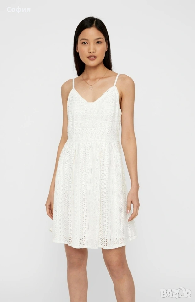 Нова,дантелена рокля vero moda,подходяща за р-р М/Л(шир.на талията 43см)дълж.73см.Моделът е с цип отстрани и регулируеми презрамки
