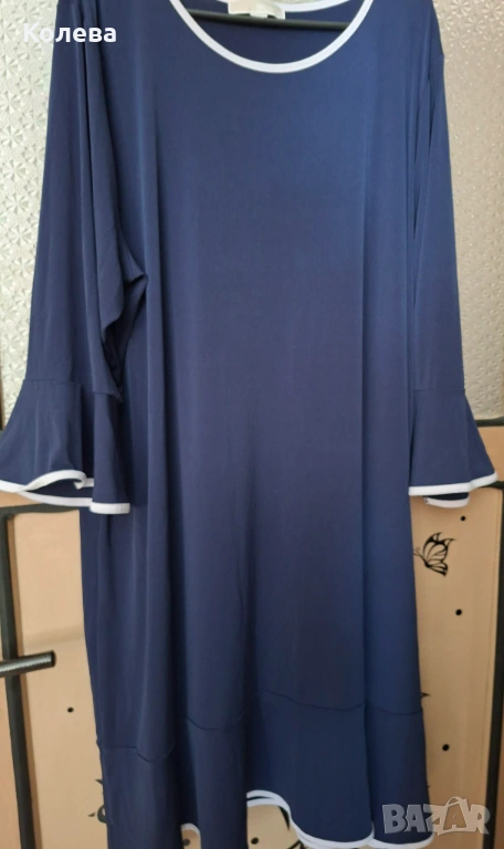 Свежа и стилна синя дамска рокля в големината 2XL. Подходяща за различни поводи и събития. Използвана, но запазена в отлично състояние.