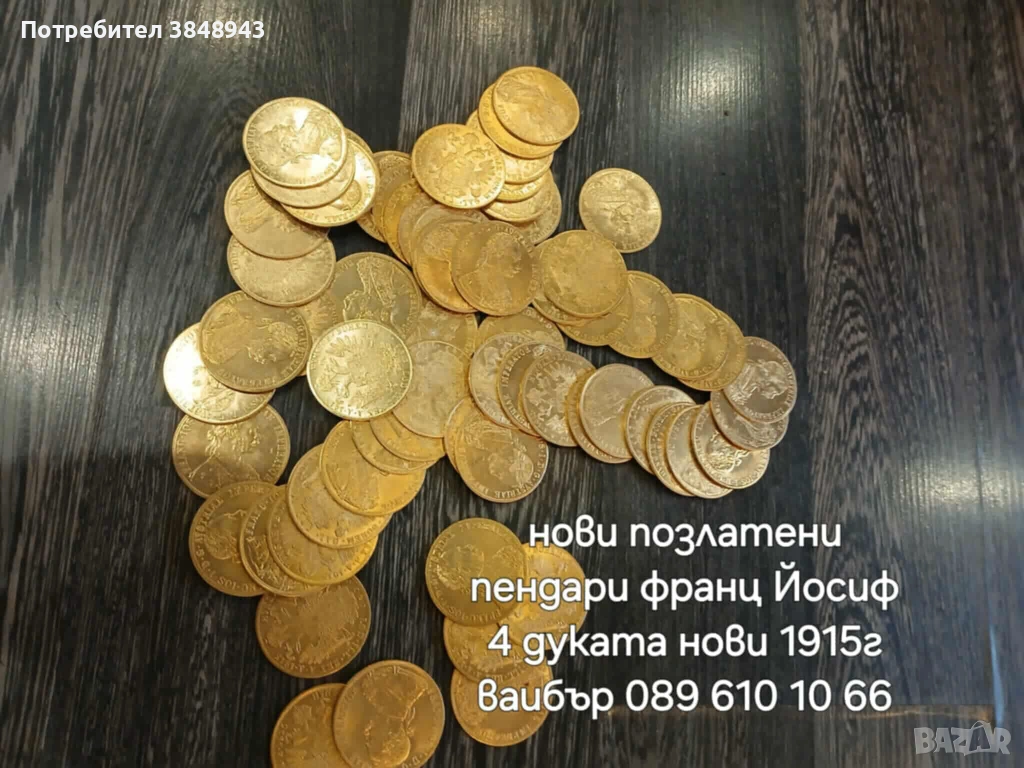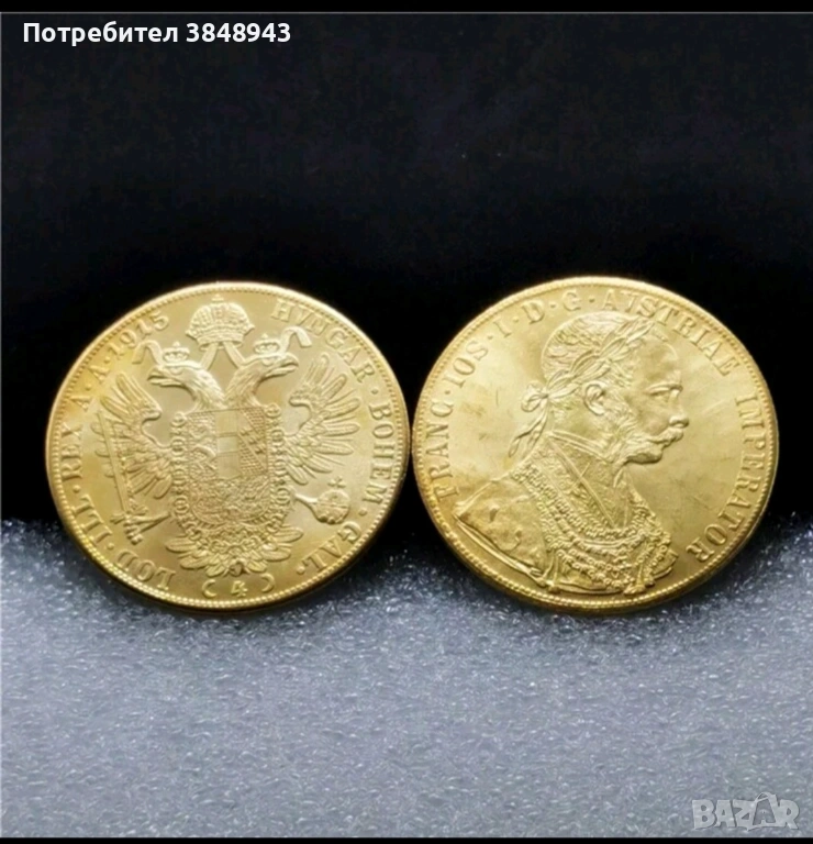 Позлатени пендари франц Йосиф 4 дуката 1915г за накит
