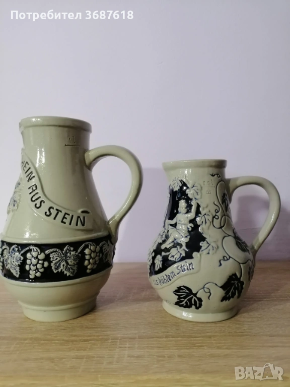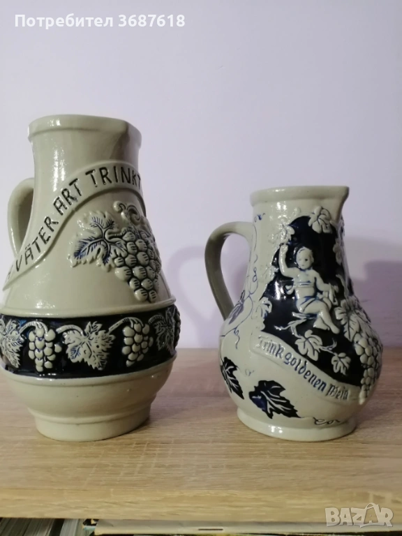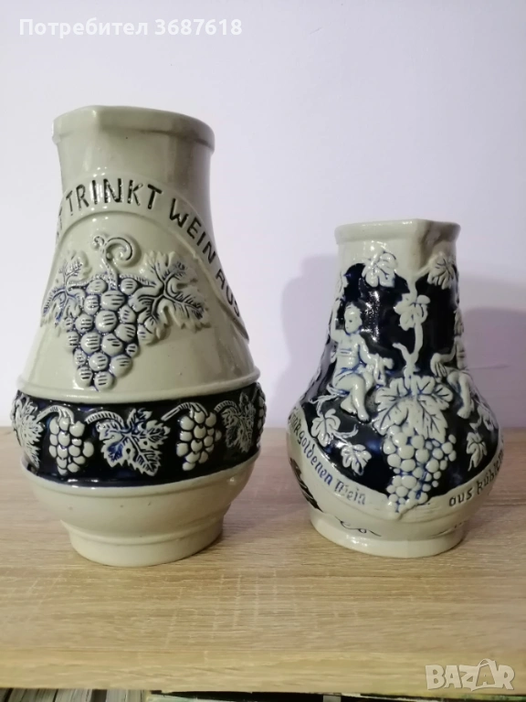 Продавам две красиви немски кани за вино или други напитки. Каните са - малка с височина 16см и по голяма с височина ок.21