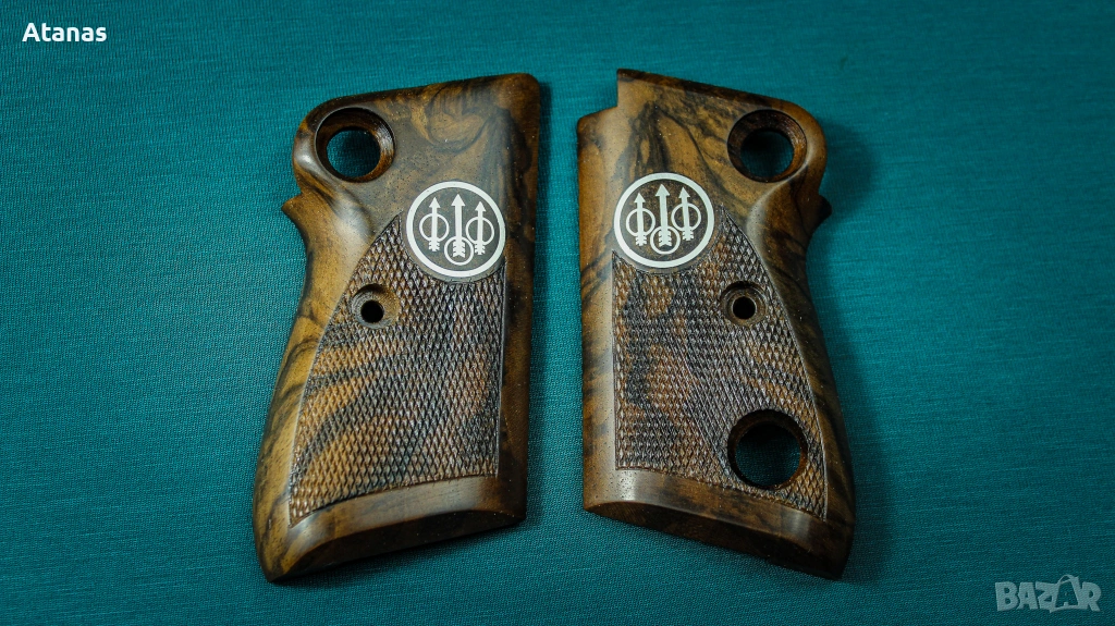 Два ръчно изработени чирена от орех с инкрустирано лого на Beretta. Чирените могат да бъдат изработени от друг материал по преценка на клиента. Позволяват персонализация! Монтират се с оригиналните винтове.
