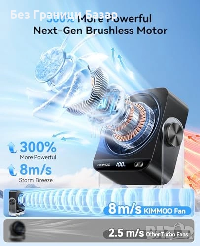 Мощен безчетков мотор до 9000 RPM и скорост на въздуха до 8 m/s