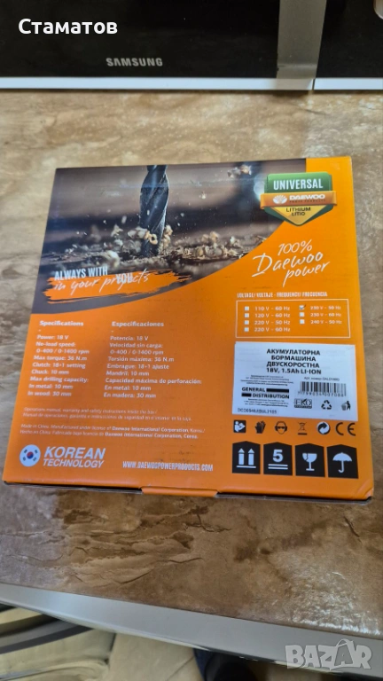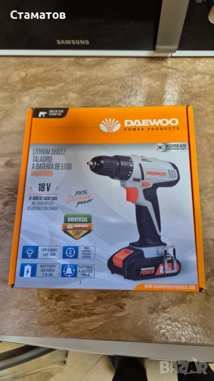 Акумулаторен винтоверт DAEWOO DALD180Q се доставя с батерия с напрежение 18 V, капацитет 1.5 Ah и зарядно устройство. Въртящият момент е 36 Nm, а степените на въртене - 18+1. Максималният капацитет на пробиване в дърво е 30 мм, а в метал - 10 мм. Бормашината разполага с патронник 10 мм.