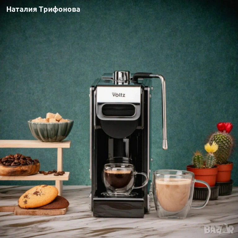 Еспресо машина 8в1 Oliver Voltz OV51171N8M – За капсули и мляно кафе, 1450W, 19 Bar, 5 адаптера 5VS1